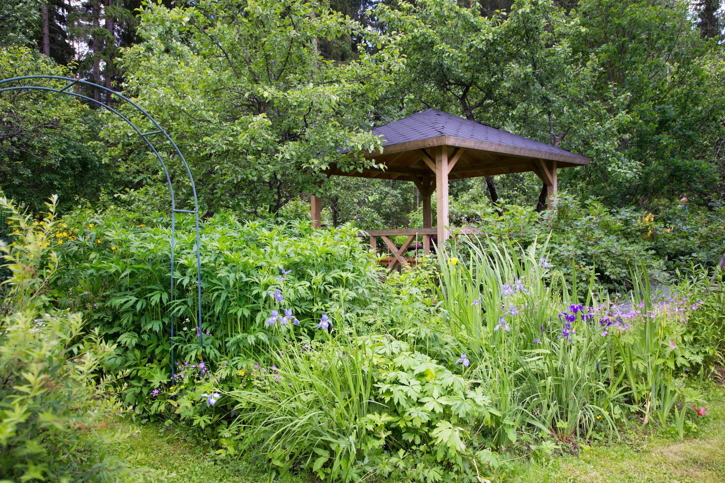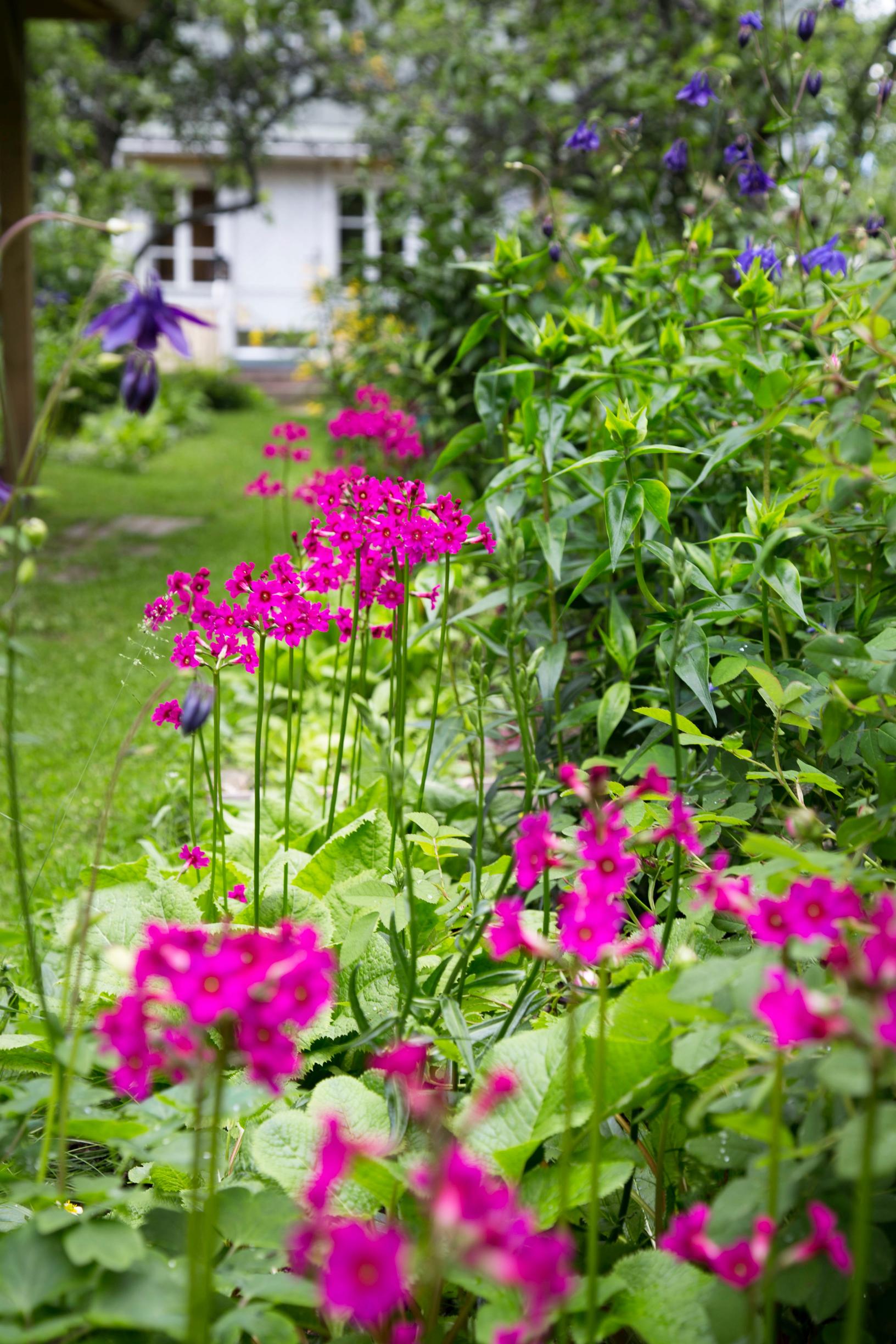 Liisa ja Mikko Rajala pitävät perennojen rehottamisen visusti aisoissa. Kun taimilla on runsaasti kasvutilaa, niistä kehkeytyy muhkeita ja runsaskukkaisia. Näin puutarhaan mahtuu aina vain uusia, useimmiten itse lisättyjä kasveja.