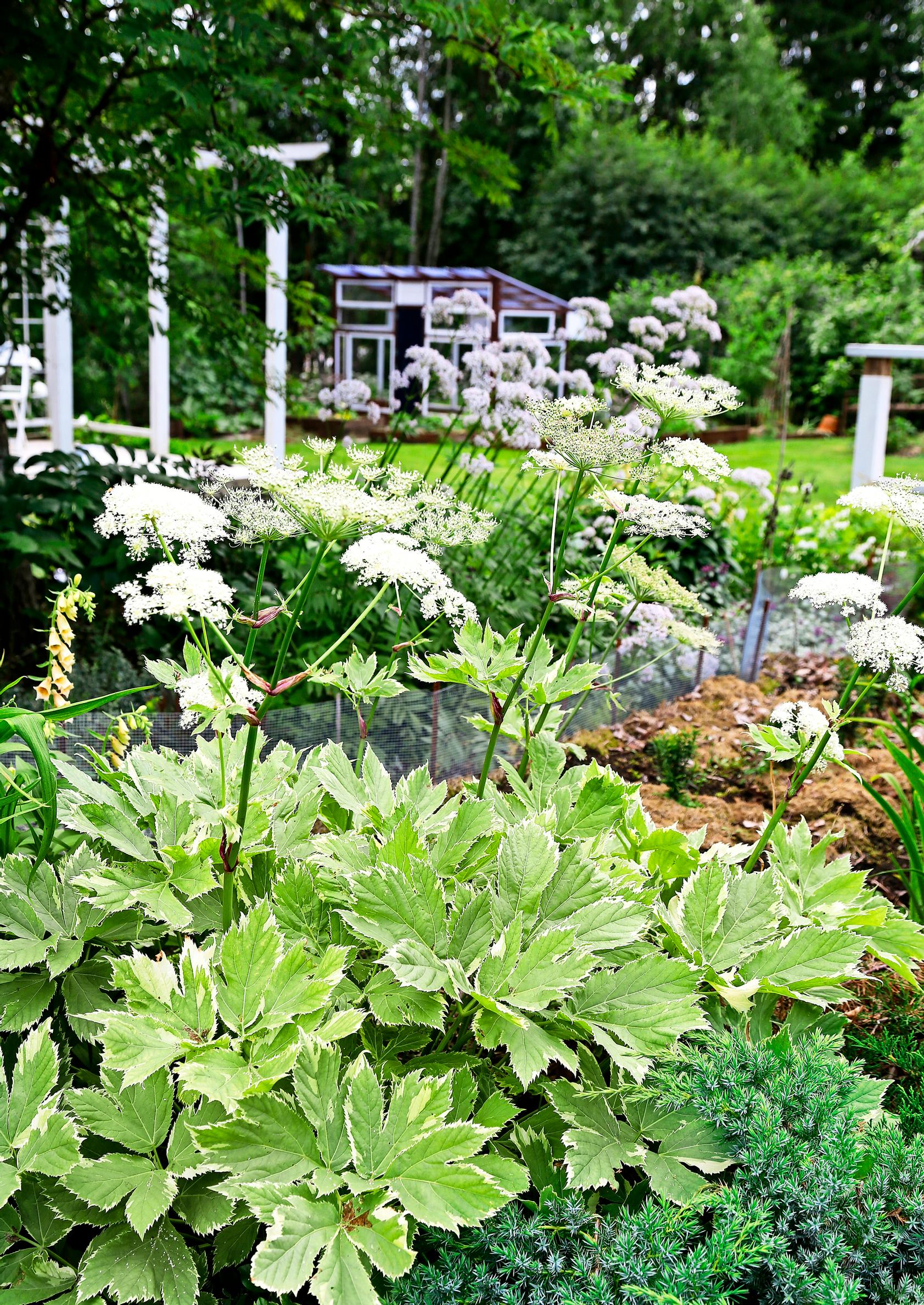 Oikeasti puutarha on nykyään todella helppohoitoinen. Olen oppinut, että kasvit menestyvät, kun ne istuttaa sopiville kasvupaikoille. Pitää uskoa, että varjokasvit haluavat kasvaa varjossa. Kate pitää rikkaruohot kurissa, eivätkä perennat tarvitse kastelua kuin viikkokausia kestävien helteiden aikana. Tunnen itseni sen verran hyvin, että en edes harkitse istuttavani tänne mitään sellaista, joka vaatisi talvisuojauksen.