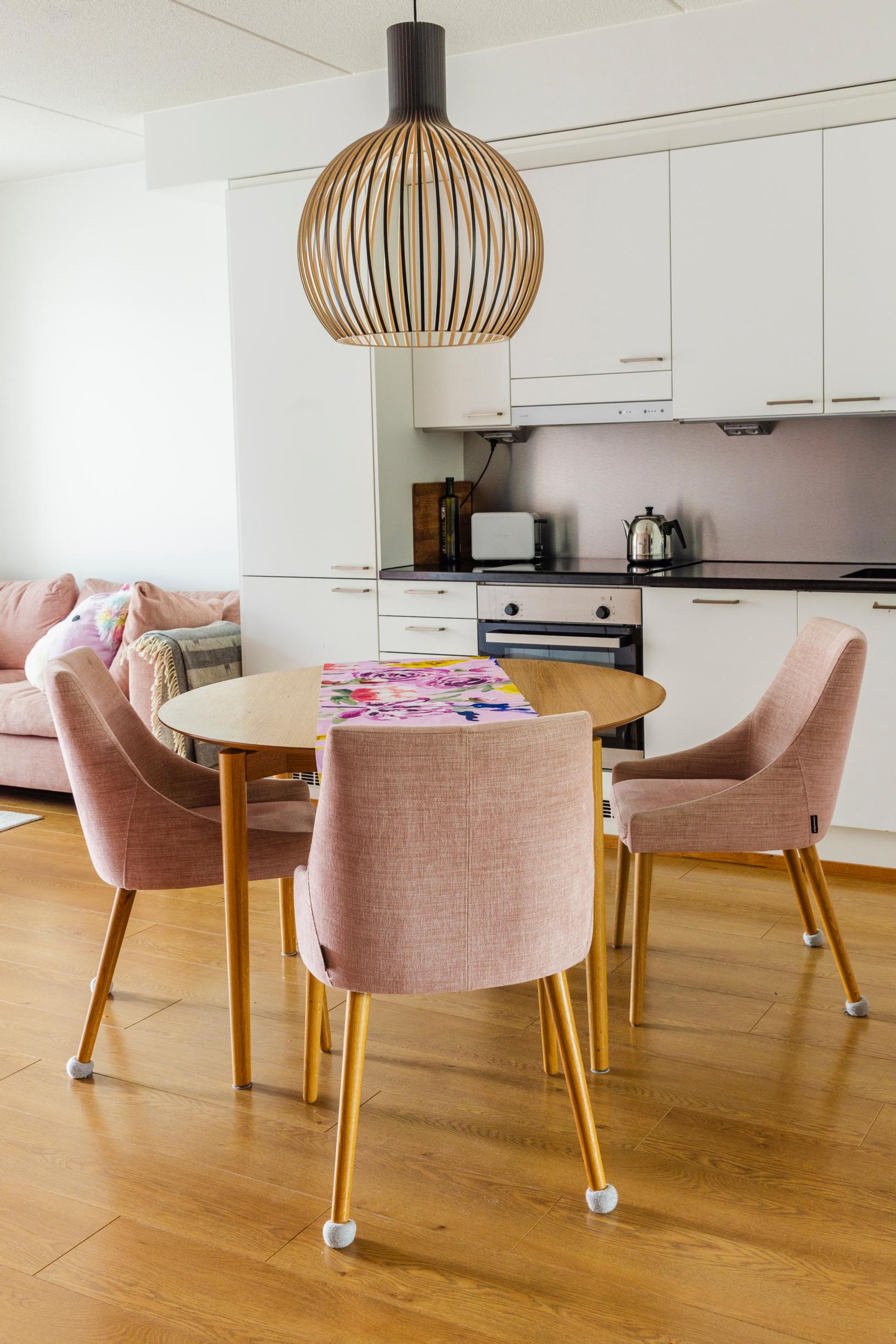Isoista neliöistä ja omakotitalosta kaipaan mahdollisuutta järjestää juhlia, päivällisiä ja illanviettoja isolla porukalla. Nyt järjestämme käytännössä kaikki juhlat kodin ulkopuolella: meillä on ollut kylpylä- ja Airbnb-jouluja ja olemme varanneet hotellihuoneita kodin läheltä.
