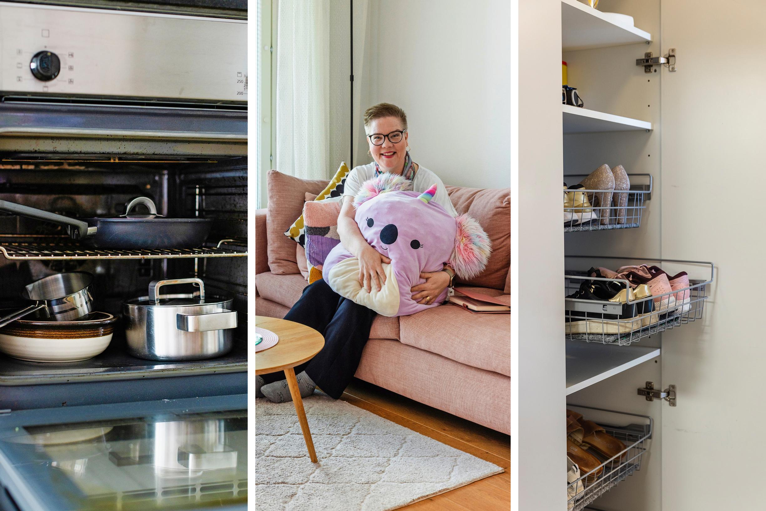 Mira Ahjoniemi perusti Suomeen konmarittajien yhteisön, kun karsimismetodi tuli suosituksi kymmenisen vuotta sitten. Oma koti vaihtui isosta omakotitalosta ensin väliaikaisesti vuokrayksiöön, sitten omaan kaksioon. Kun tila loppuu, hän järjestää puolisonsa kanssa Airbnb-jouluja.