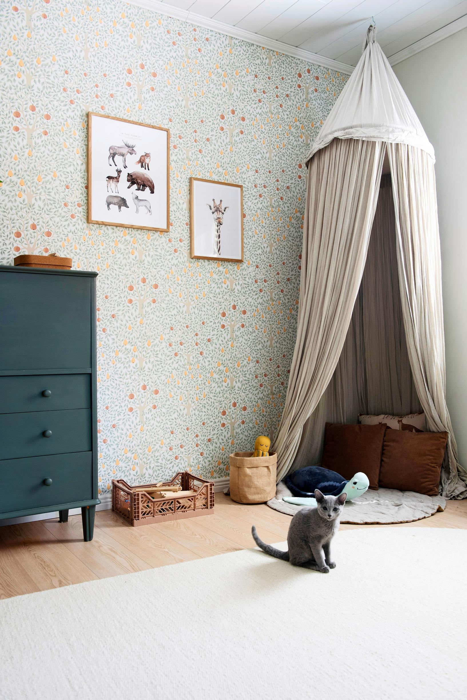 Unelmien talossa olisi vielä yksi huone lisää, jotta sinne saisi työtilat. Keittiöön tulisi saareke, jonka ympärillä mahtuisi istumaan. Kunhan lapset ovat vähän vanhempia, Mirella tassuttelisi mieluiten kauniilla parkettilattialla. Mutta tällä hetkellä nykyinen koti ja sen pohjaratkaisu tuntuu perheestä hyvältä. Etenkin yläkerta toimii loistavasti lasten kanssa, kun kokonainen kerros on rauhoitettu nukkumiseen. Alakerrassa voi oleilla vapaasti ilman pelkoa, että lapset heräisivät uniltaan.