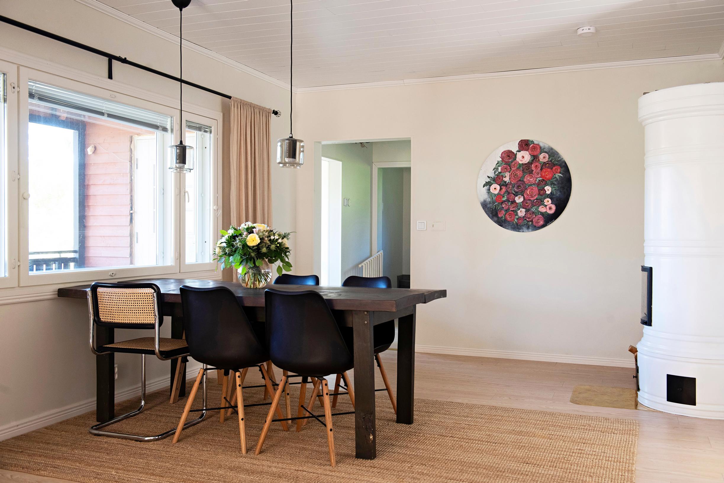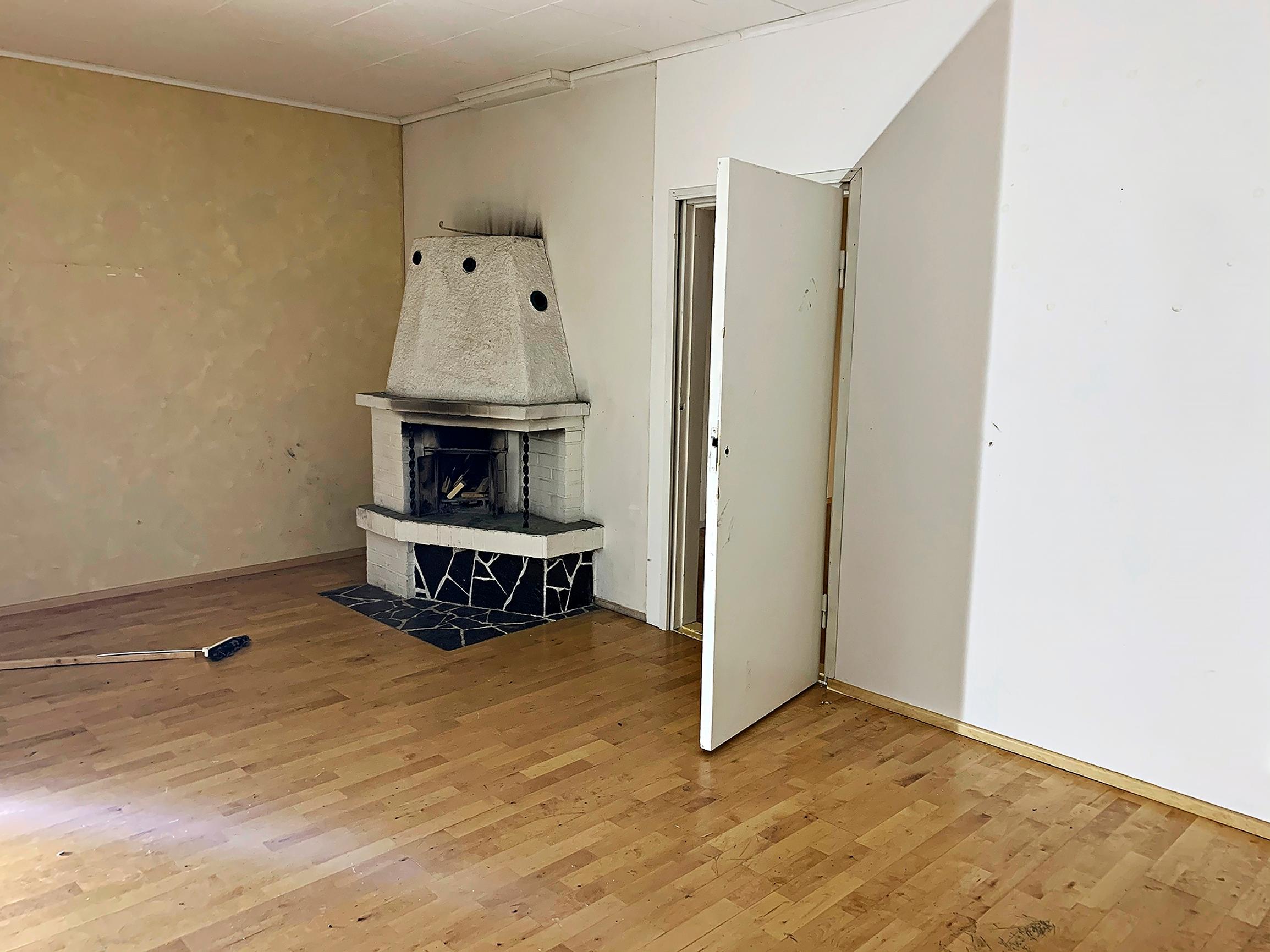 Remonttiaikataulua viivästyttänyt jalkaleikkaus ei kuitenkaan jäänyt ainoaksi yllätykseksi. Kattoa oli korotettu aikanaan ilman rakennuslupaa, joten se täytyi hakea jälkikäteen. Olohuoneen takan sen sijaan piti olla toimiva kapistus, mutta se tipahtikin kokonaan irti. Puretun takan tilalle tilattiin uusi pönttöuuni. Hankinta teki loven remonttibudjettiin, mutta pariskunta on ollut tyytyväinen pönttöuuniin. Sen ulkonäkö miellyttää, ja puun polttamisesta leviää ihana tuoksu. Pönttöuunissa poltettiinkin kevättalvella puita aamuin illoin.