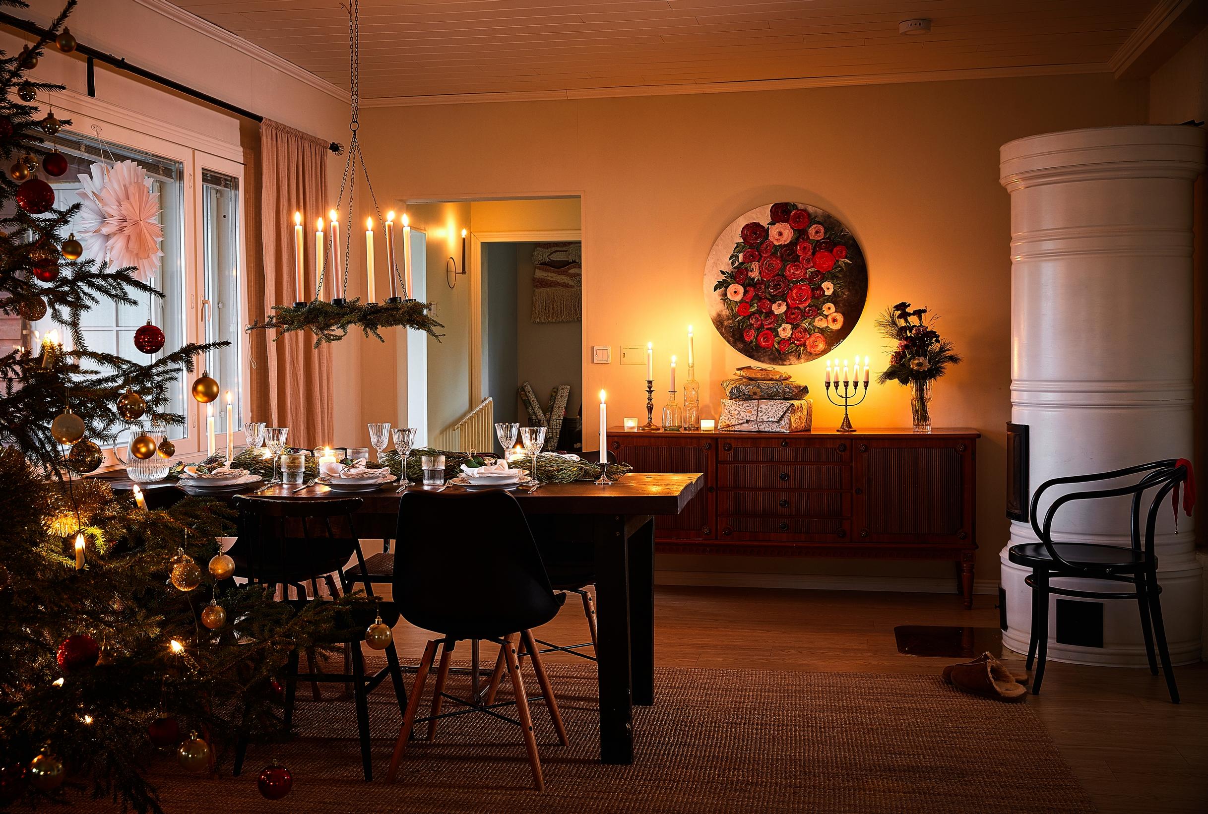 Ensimmäinen joulu itse remontoidussa kodissa: Mirellan perheen juhlan tuovat herkät paperitähdet, piparien tuoksu ja kynttilöiden välke