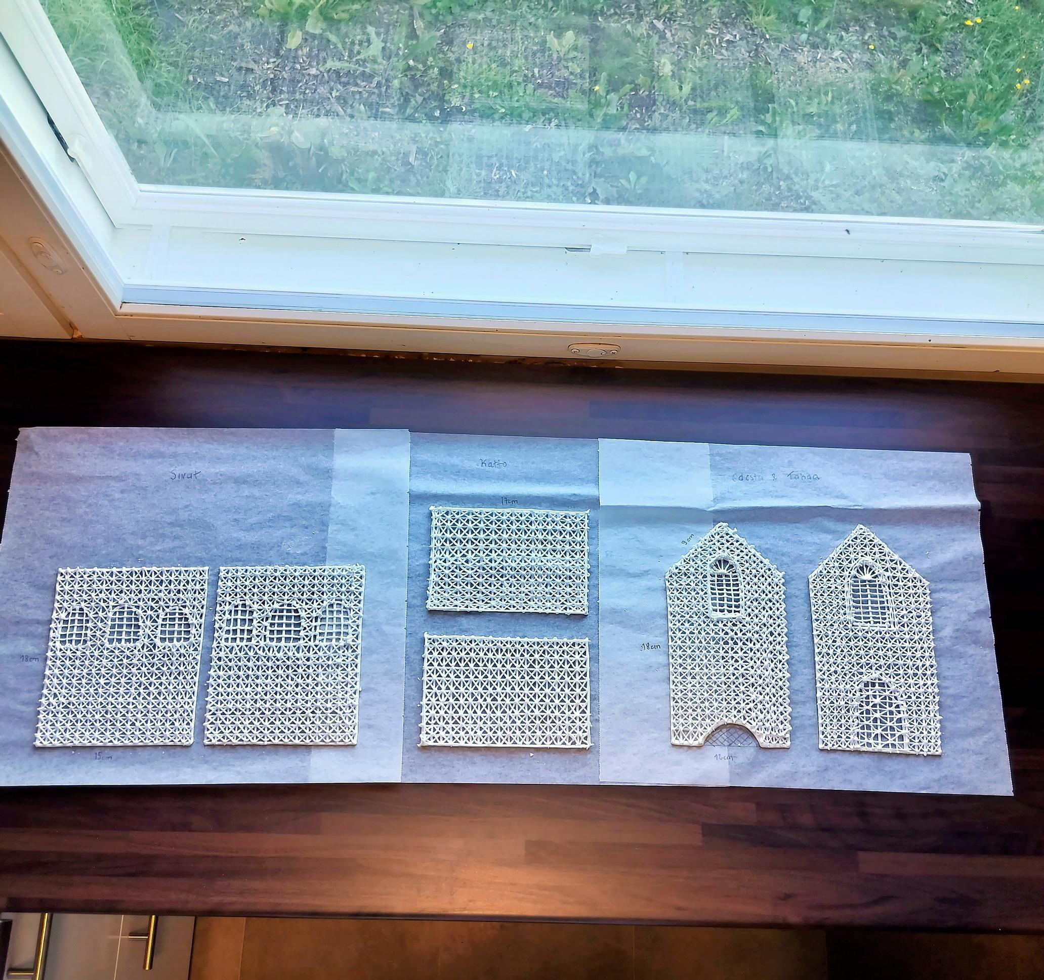 Viimeisimmän talolyhdyn osien pursottamiseen kului kuusi tuntia, ja kädet olivat aivan hapoilla! Silti se on minusta kivoin ja rentouttavin vaihe tekemisessä, sillä en tykkää kaavojen piirtämisestä.