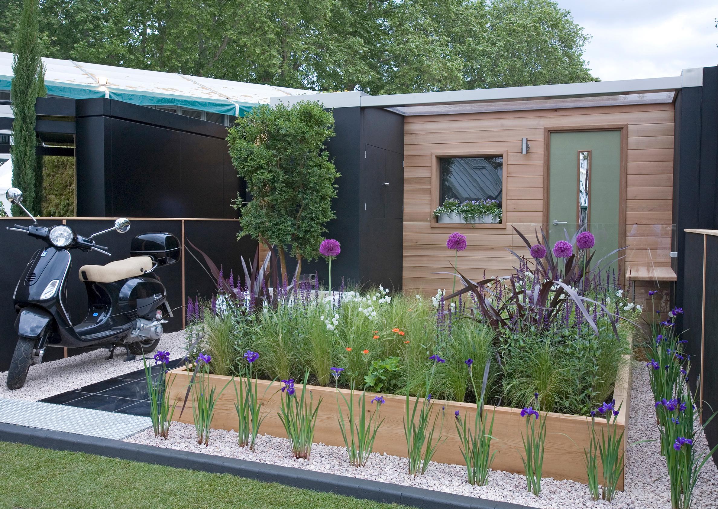 - Rehevä kasvillisuus antaa hyvän vastakohdan niukille ja suoralinjaisille rakenteille.