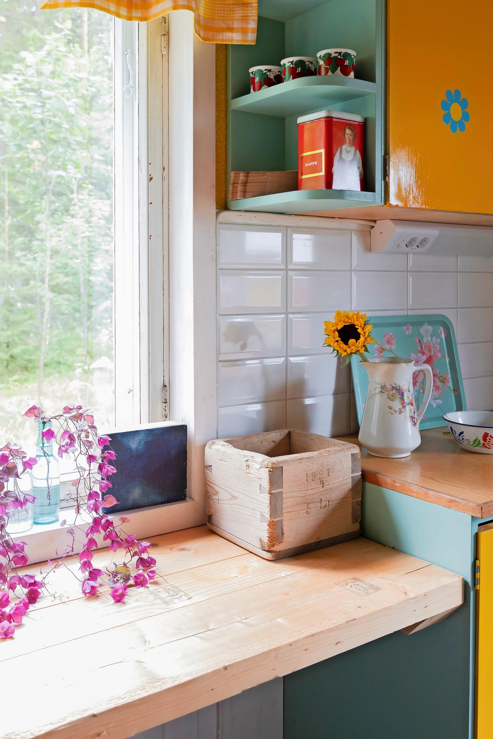 Yli satavuotias, kestävä kappa sai uuden tehtävän keittiössä, sillä puhdistettuna siitä tuli kaunis ja kätevä säilytyslaatikko. Vanha puuesine tuo myös muistoja menneestä pientilalla, jolla Anita ja Timo Hannunen mökkeilevät.