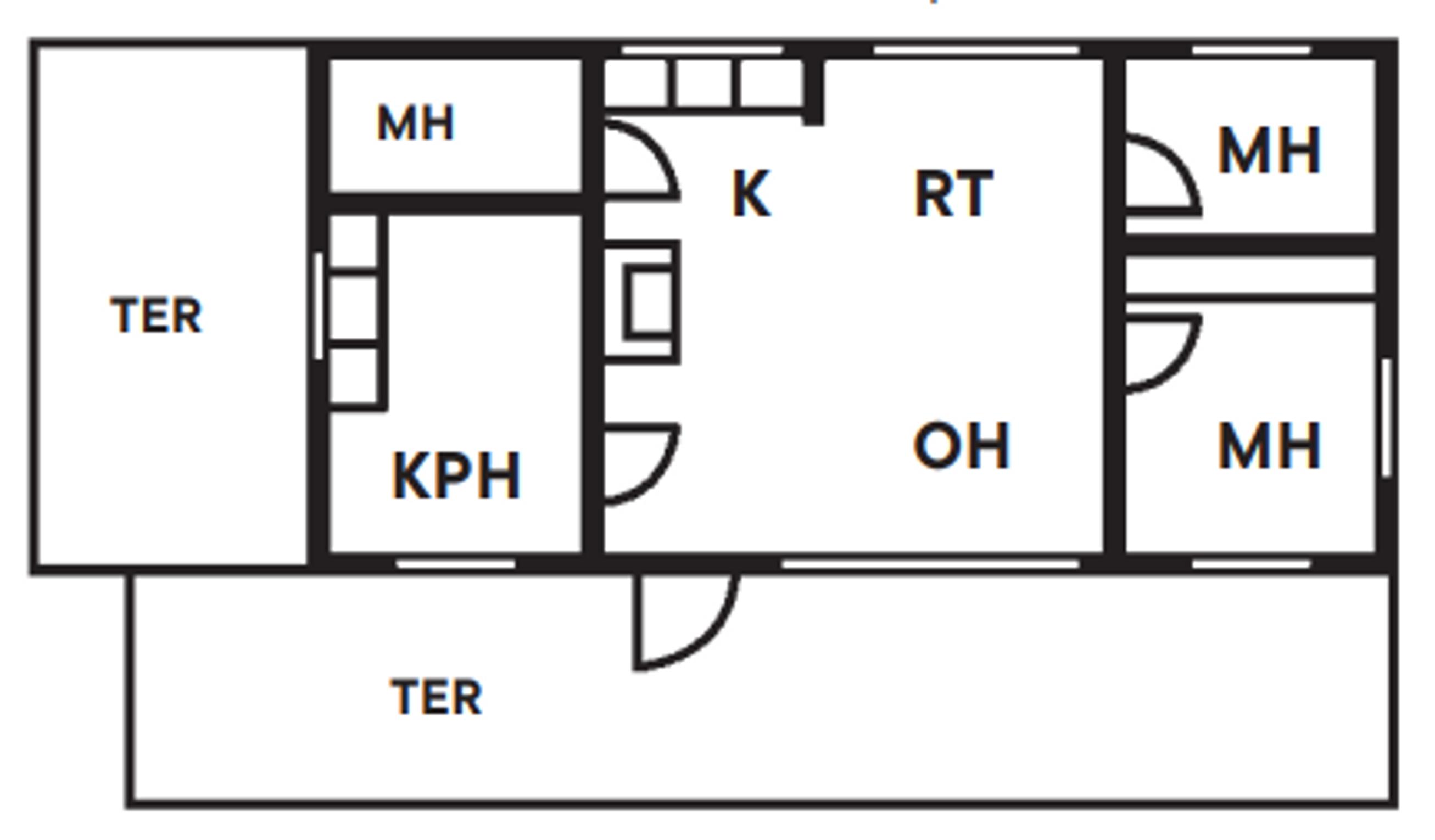 Vapaa-ajankoti Mökki Turun saaristossa. Neliöitä päämökissä on 60, saunarakennuksessa 6,5 ja vierasmajassa 10.