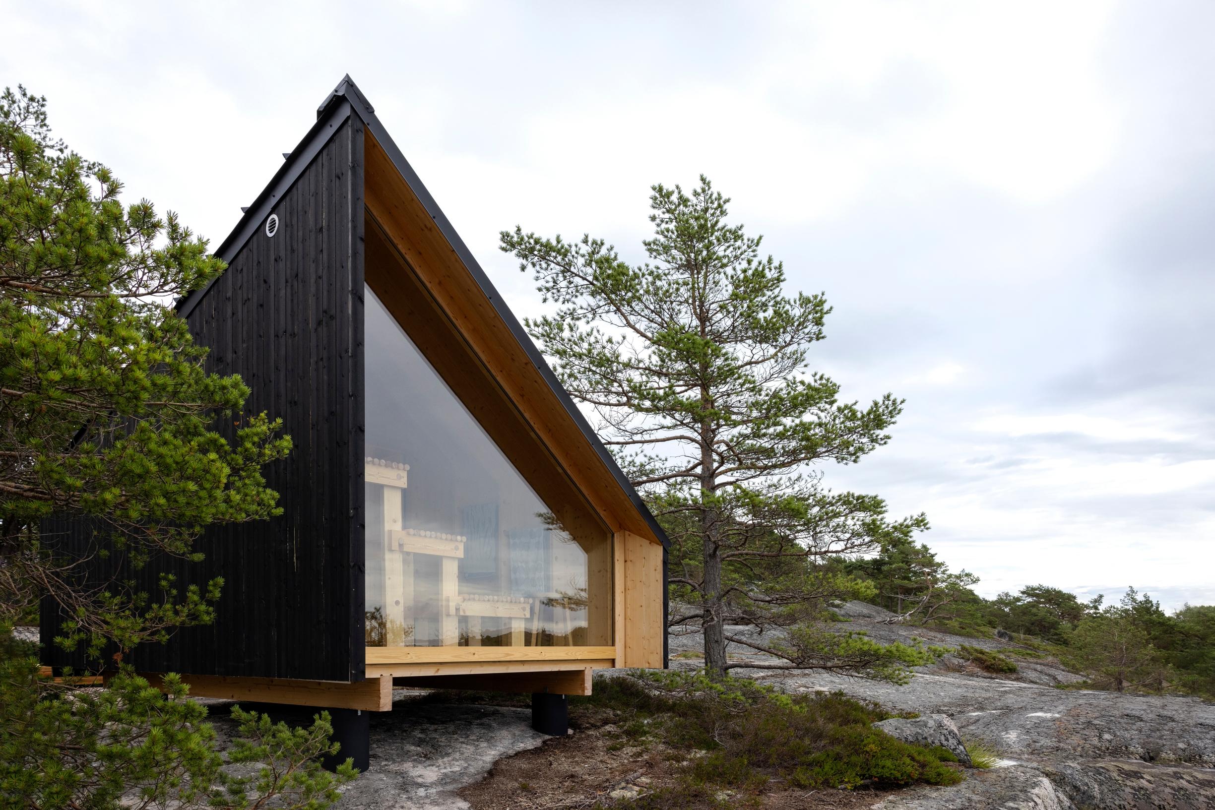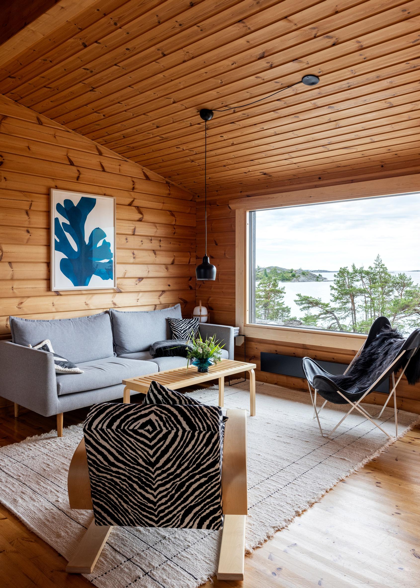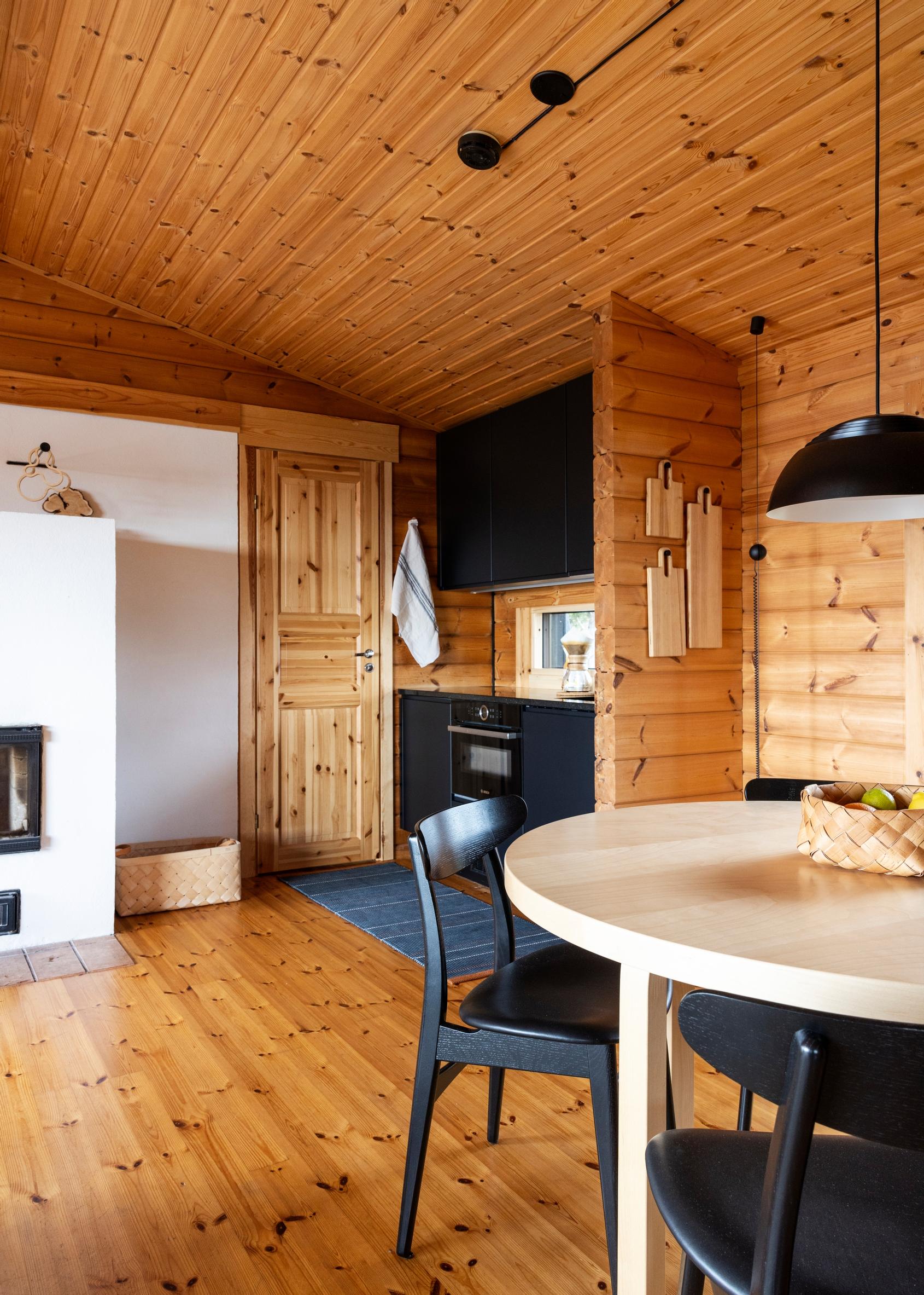 Tontilla oli alun perin yksi perinteinen mökki, jonka Rena ja Klaus kunnostivat huolellisesti sisältä ja ulkoa. Mökin puuverhoilu on käsitelty tummaksi, mikä sointuu saaristoluontoon täydellisesti.