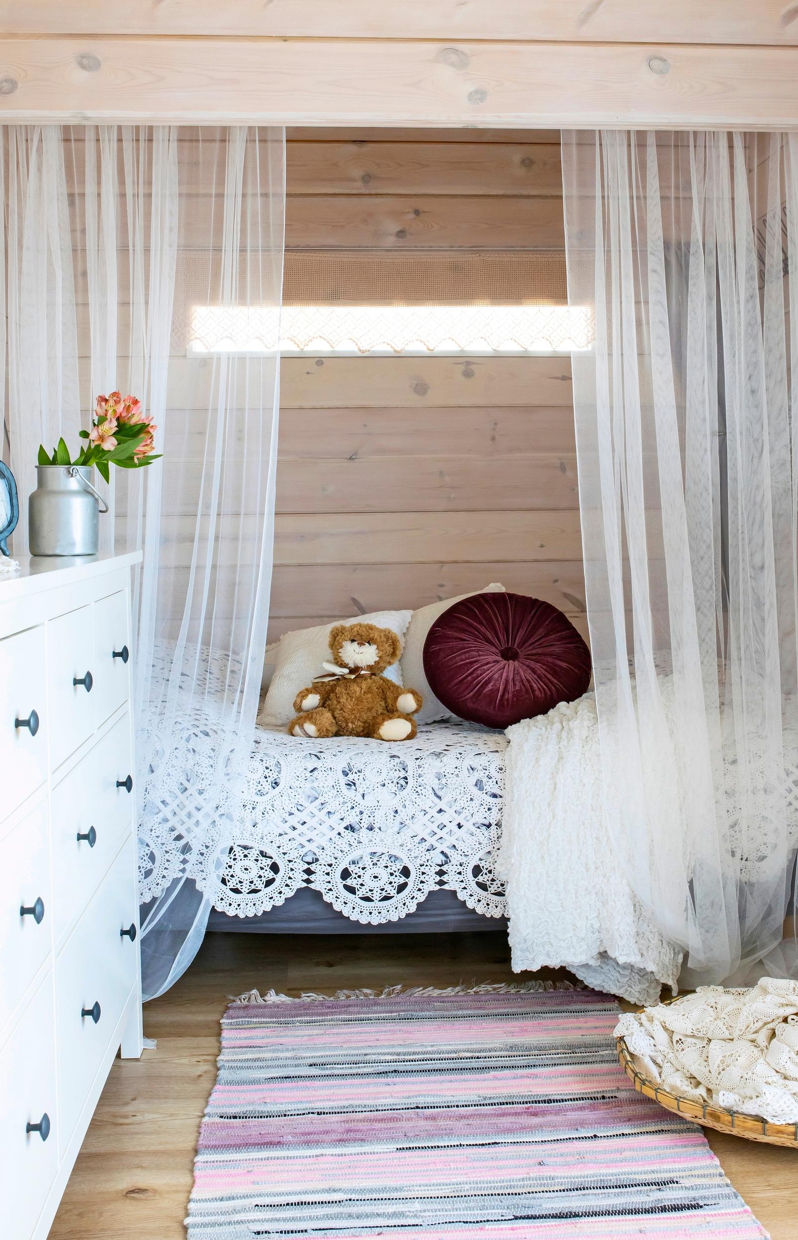 Jotta lapset viihtyvät mökillä, mukana on varmuuden vuoksi pelejä, uimapatjoja ja kumivene. Pelastusliivit ovat tietysti vesiliikennelain mukainen vakiovaruste.