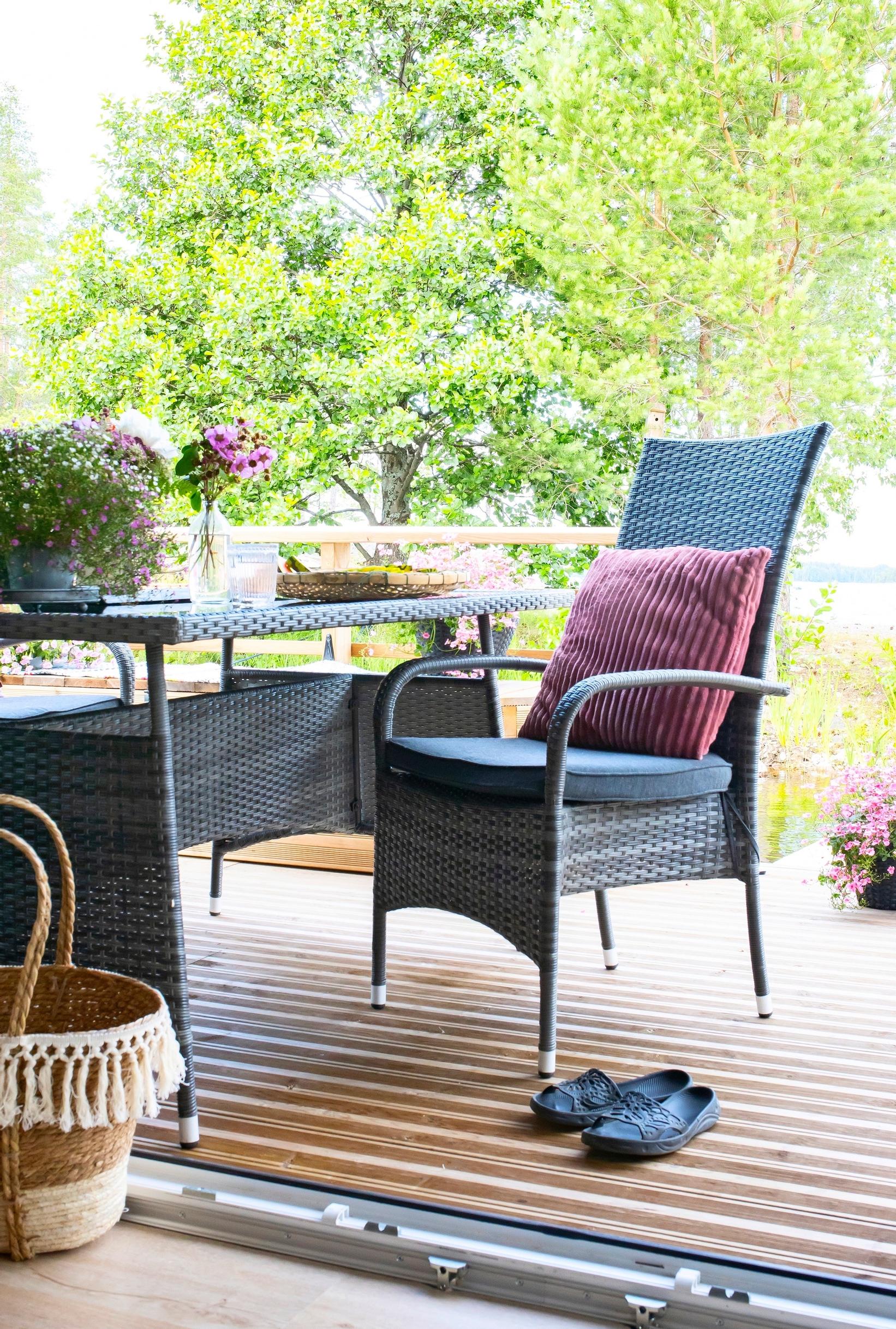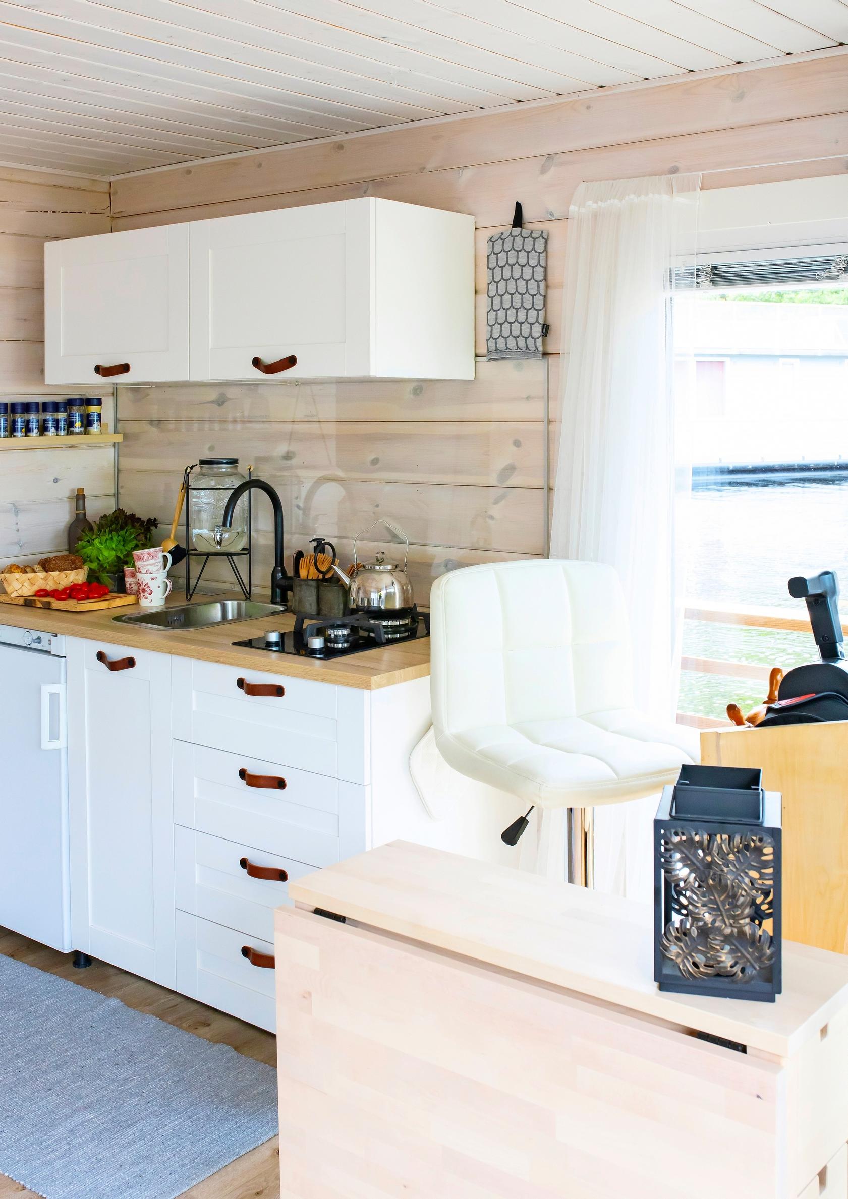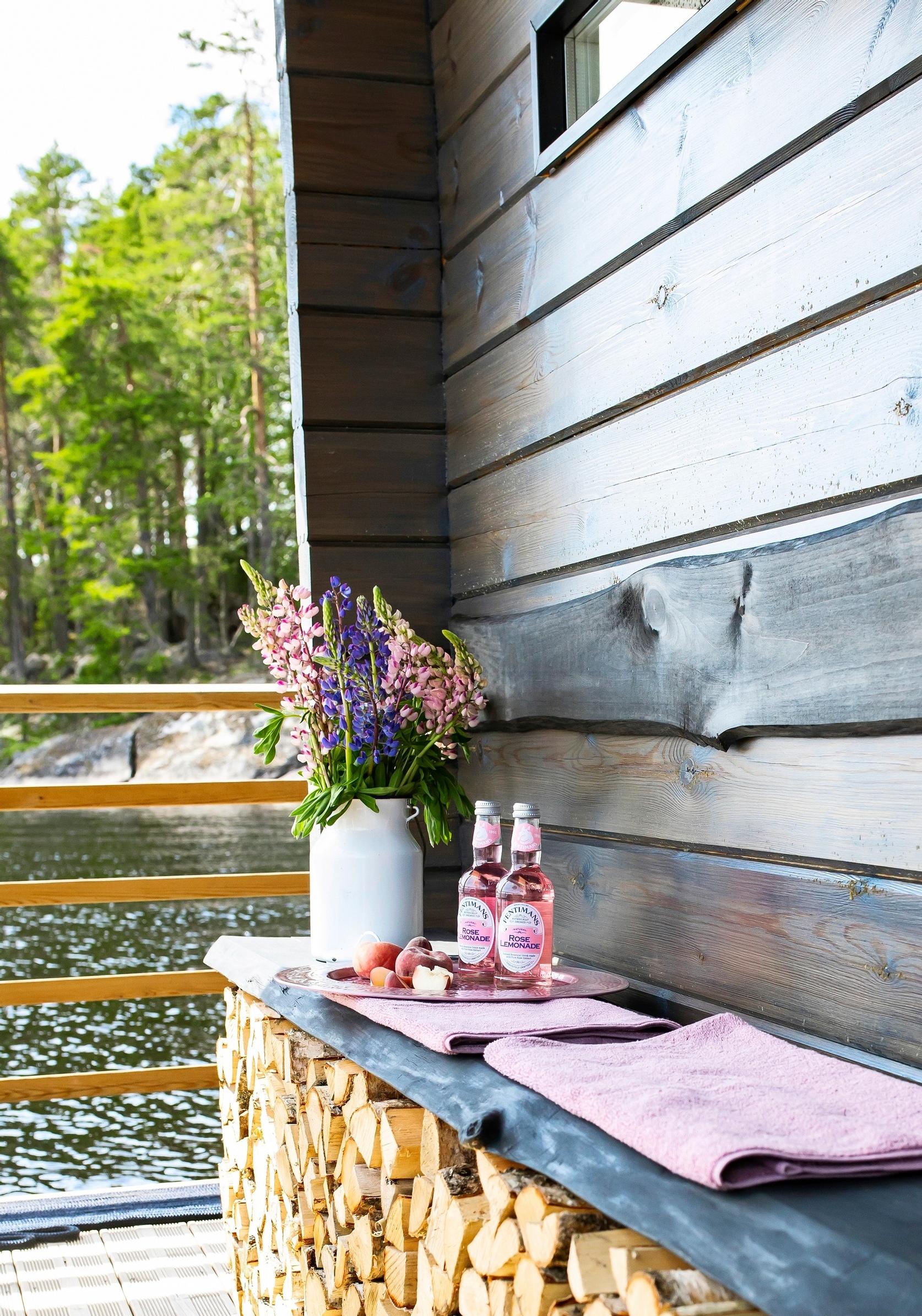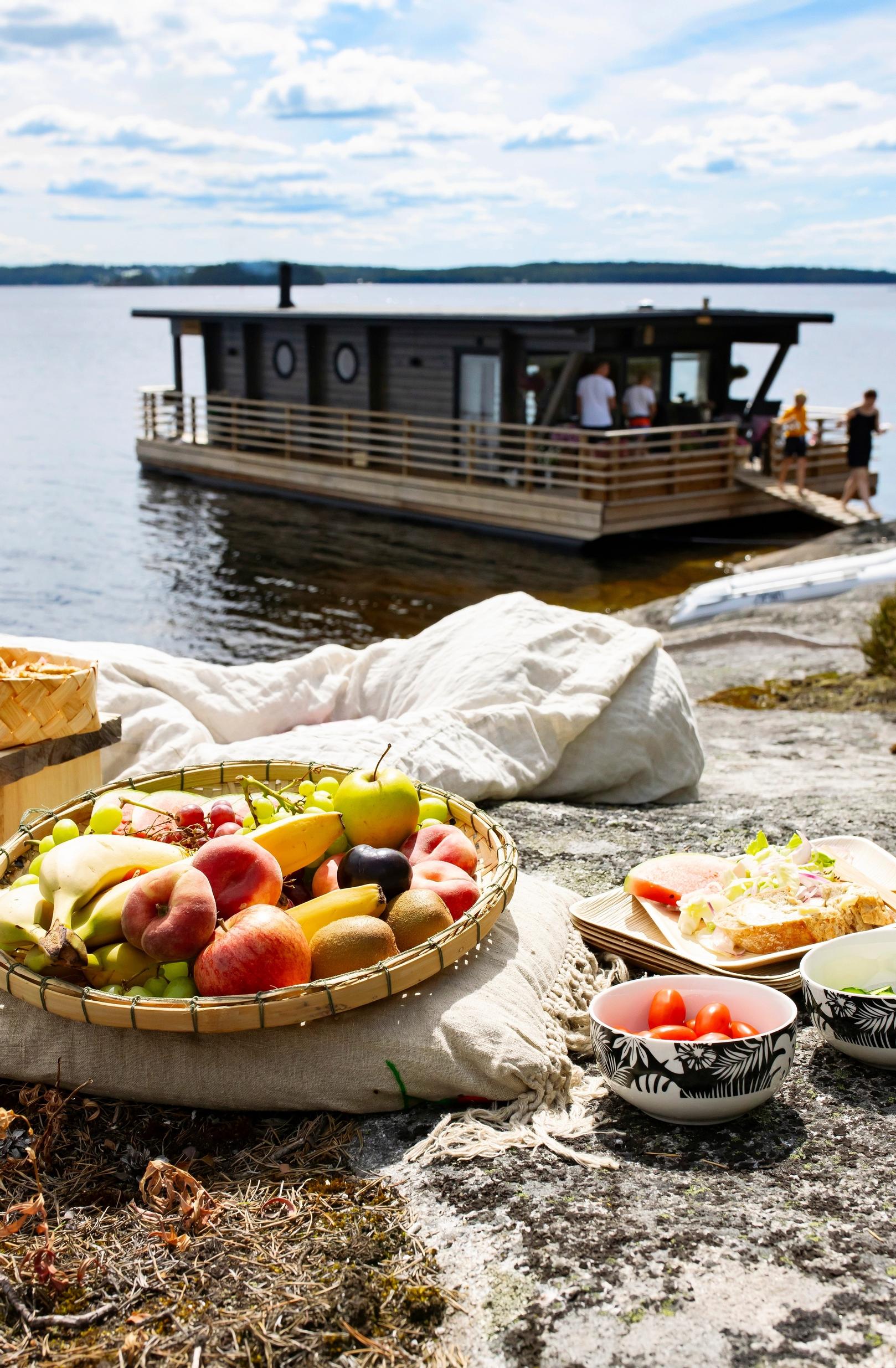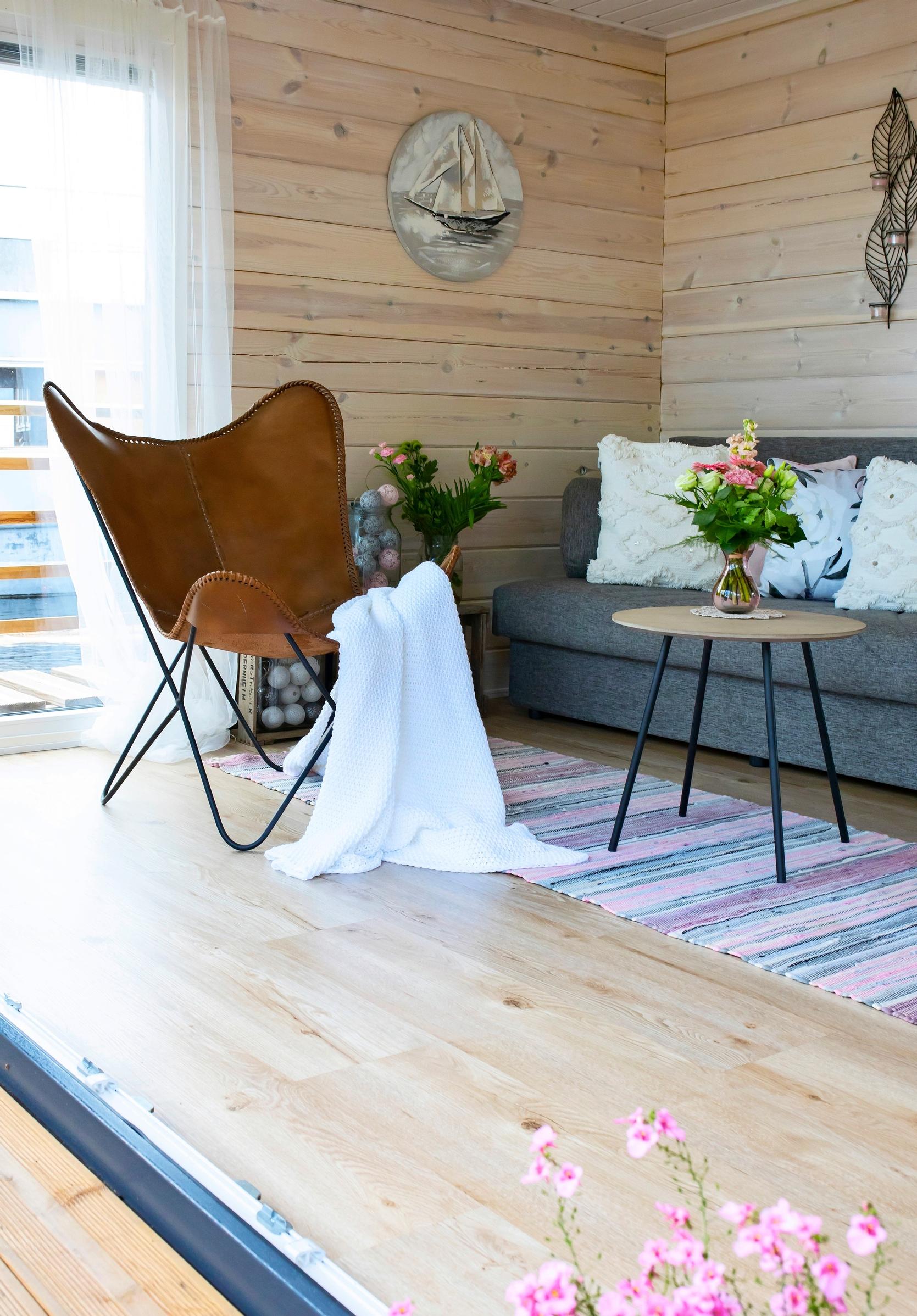 – Poimimme rusinat pullasta. Tässä meidän ratkaisussa yhdistyvät mökkeilyn ja veneilyn parhaat puolet. Tyynellä säällä tuntuu kuin istuisi omassa olohuoneessa.