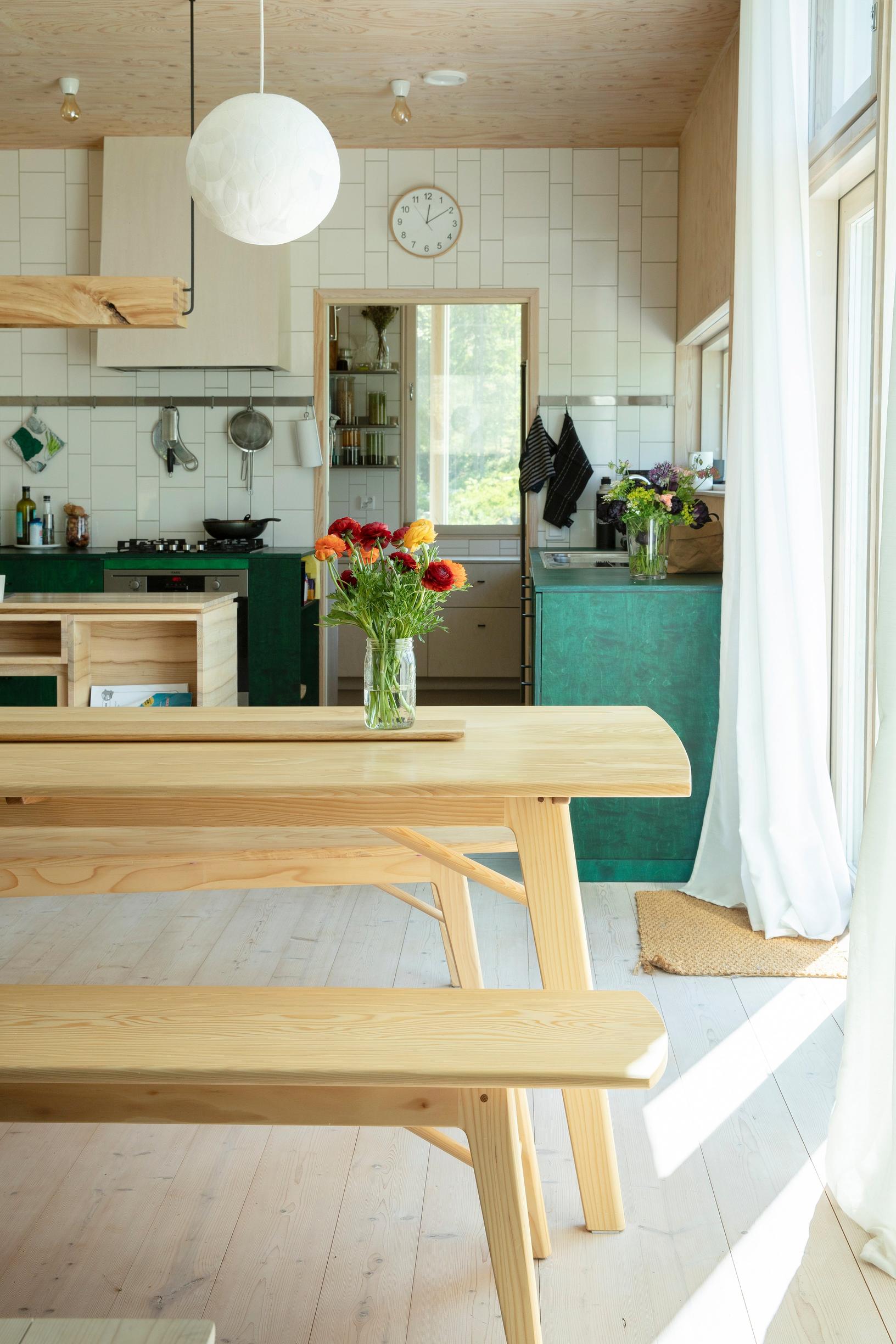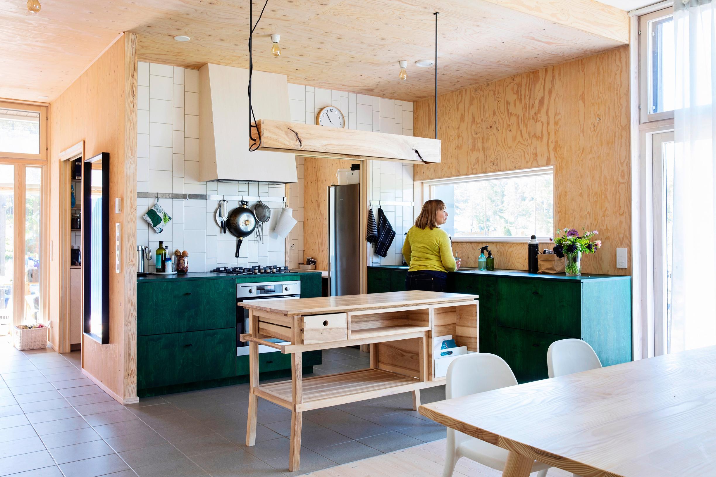 Viherkatto, savirapatut sisäseinät ja sopiva annos mökkifiilistä – Monoset rakensivat luontoon kauniisti sulautuvan ekotalon