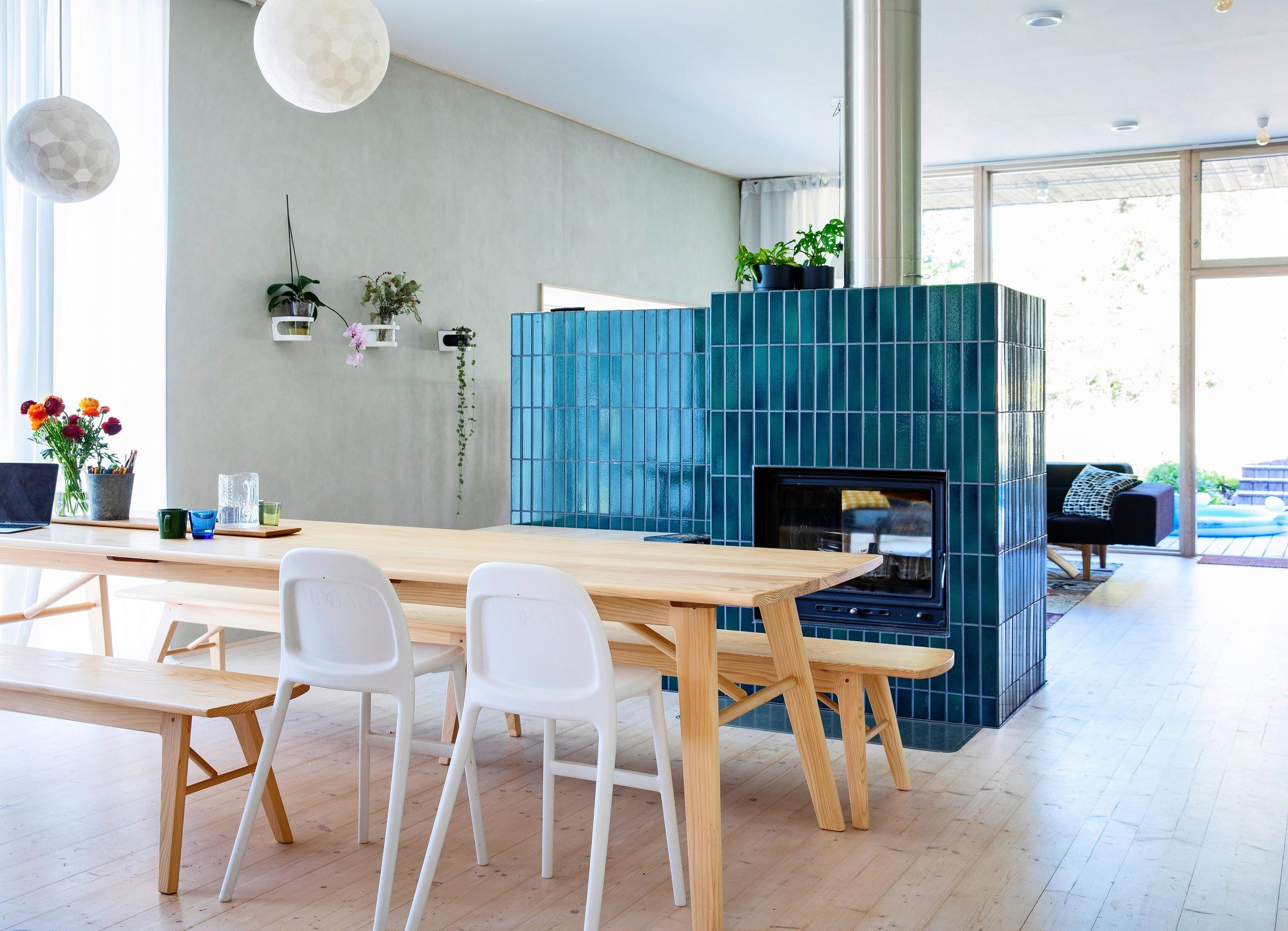 – Halusimme elävän tulen, joka vie mökkifiilikseen. Lisäksi halusimme, että kotona on pistemäinen lämmönlähde, Sannaliina kuvailee.
