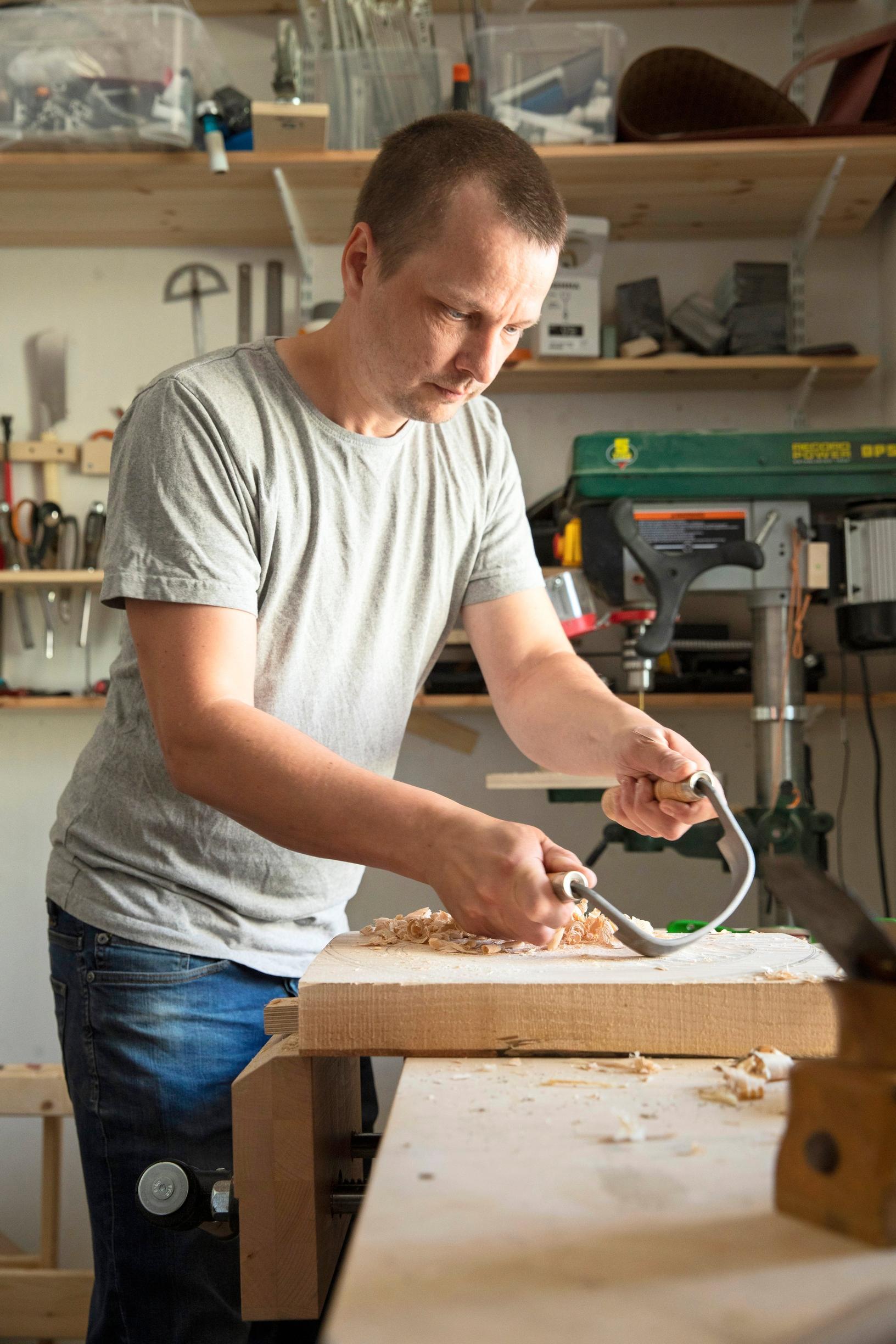 – Olin pari kuukautta sapattivapaalla työstäni, ja vapaan jälkeen paluu entiseen työpaikkaan ei enää tuntunut mielekkäältä. Irtisanouduin ja opiskelin rakentamisen ohella puusepäksi.