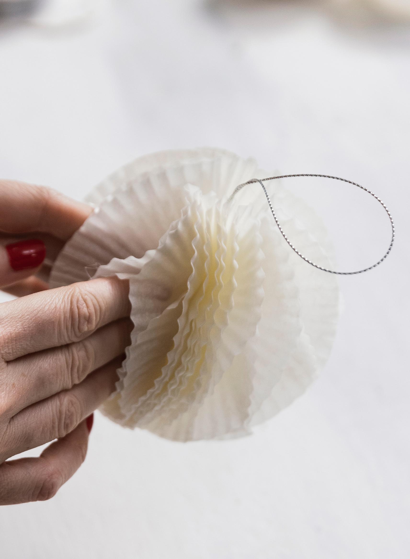 Uskoisitko, että nämä joulukuusenkoristeet on tehty tavallisista muffinivuoista? Paperiset vuoat liimataan päällekkäin ja avataan palloksi. Muffinivuokien ja liiman lisäksi tarvitset vain narua. Ripusta pallot joulukuusen koristeeksi tai yhdistä ne narun avulla pitkäksi nauhaksi.