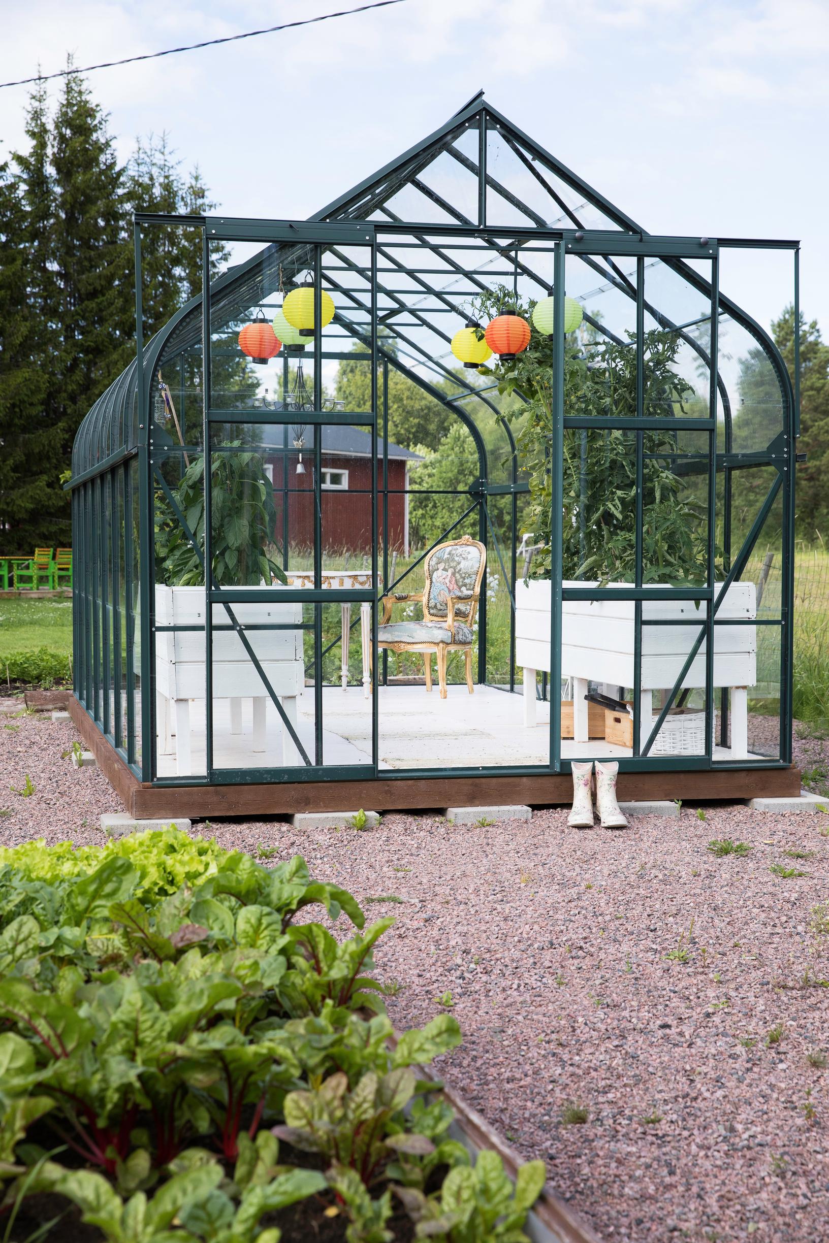 Talon valmistuttua kunnostimme liiterin kesävierashuoneeksi ja rakensimme uuden ulkovaraston ja lasihuoneen.