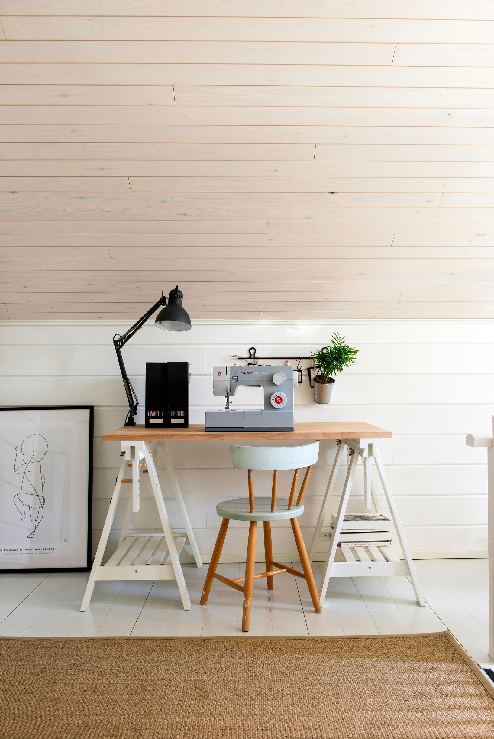 Sukujemme kädentaidot näkyvät ympäri taloa. Ruokailutilan kipsitaulu, joka on saanut mallinsa Eliel Saarisen tuhannen markan setelistä, ja olohuoneen sanomalehtipaperista valmistettu norsu ovat Henrin vaarin tekemiä. Niillä on paljon tunnearvoa. Norsu on lempiesineeni. Kuistin kärrynpyörälamppu on siskoni tekemä. Yläkerran aulan ompelutila odottelee kiireettömämpiä aikoja, jolloin pääsen taas toteuttamaan ideoitani.