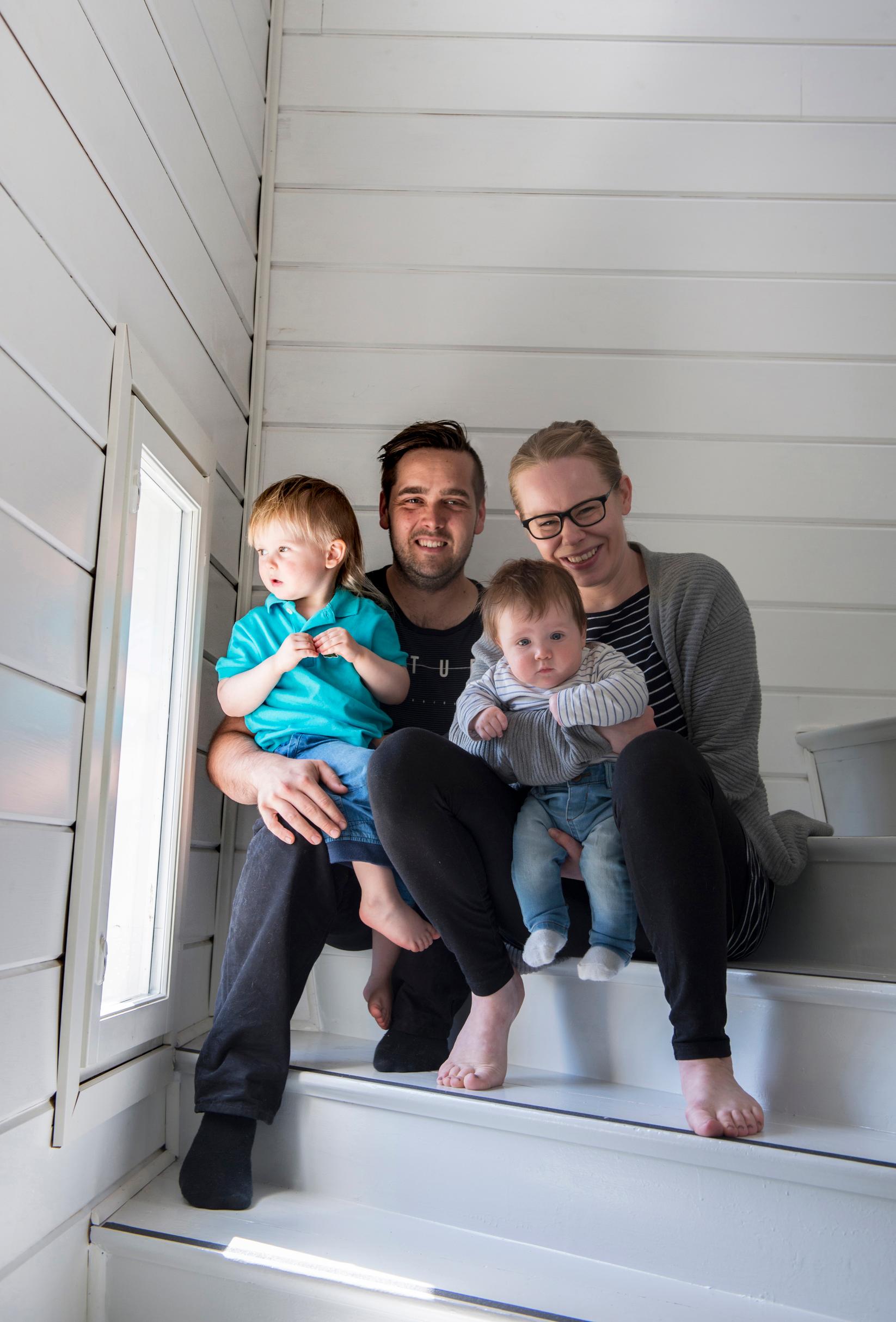 Hannele Karttunen ja Henri Enbäck remontoivat lastenhoidon ja työn ohessa Henrin vanhempien pihapiirissä sijaitsevan rintamamiestalon kodikseen. Talo on Henrin äidin lapsuudenkoti.