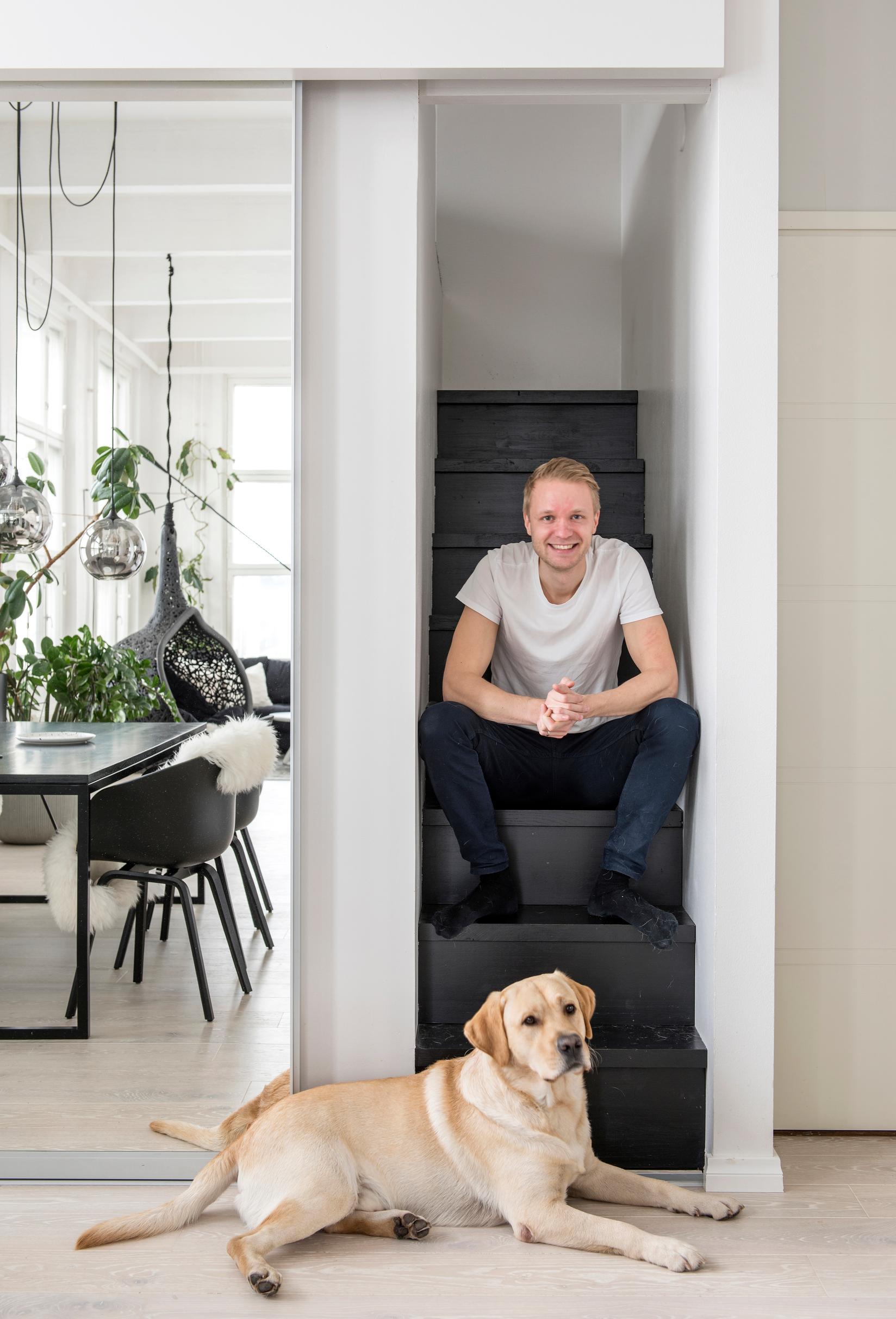 Vaikka asunto oli muuttovalmis, ammattilaisina Leena ja Antti halusivat silti kaksi vuotta sitten laittaa kaiken mieleisekseen lattiasta keittiöön ja lisätä säilytystilaa. Avoimen pohjaratkaisun he säilyttivät. Sisustussuunnittelua opiskellut Leena suunnittelee julkisia tiloja. Tuotemuotoilua opiskellut Antti toimii nykyisin start up -asiantuntijana Kaakkois-Suomen ammattikorkeakoulussa.