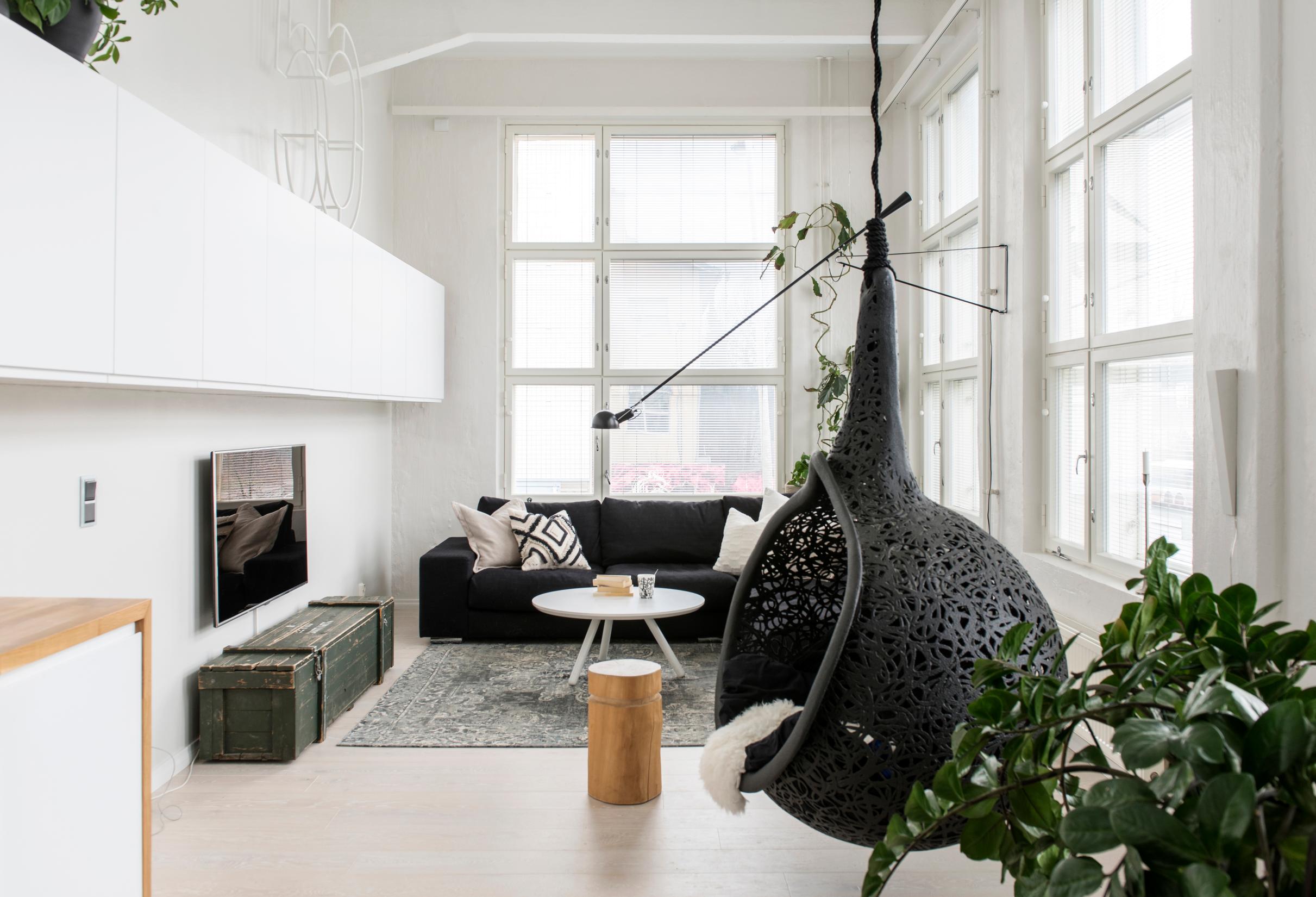 ”Tilan korkeus ja väljyys antavat mahdollisuuden sisustaa isoilla kalusteilla ja tavaroilla. Suuret kasvit ja riippuvalaisimet sopivat hyvin loftiin.”