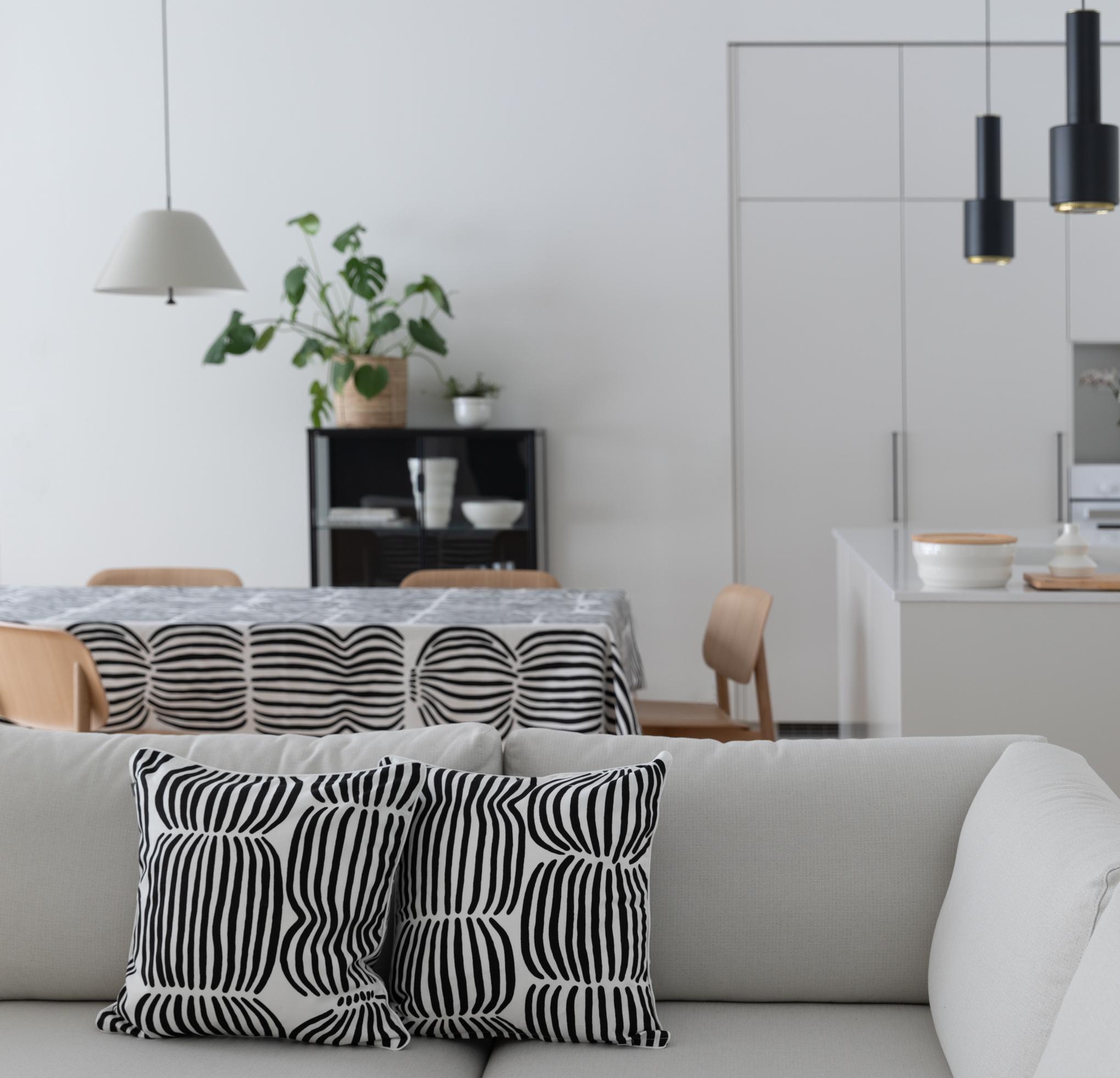 Graafiset mustavalkoiset kuosit sopivat monenlaiseen sisustukseen. Klassinen väriyhdistelmä toimii hyvin yksinään, mutta mustavalkoiseen tyyliin voi myös yhdistää väriä. Näin sisustusta voi halutessaan helposti muutella esimerkiksi vuodenaikojen mukaan. Toisaalta raikas ja ajaton yhdistelmä toimii sellaisenaan sesongista toiseen.