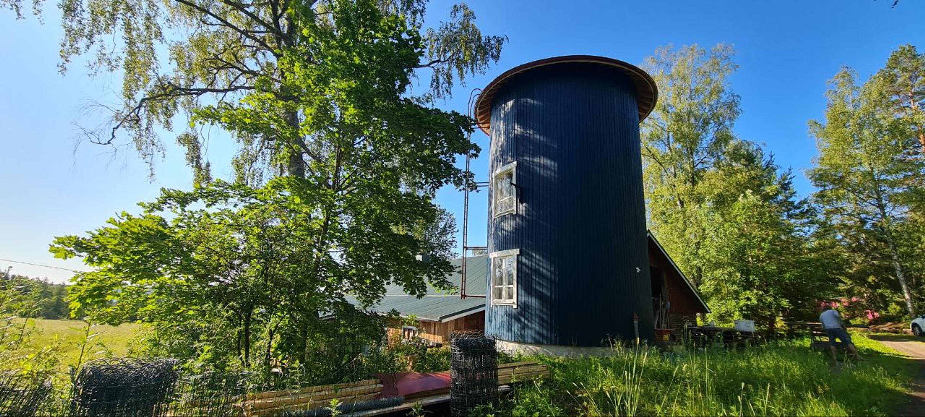Onpas hauska talo! Niila muutti rehusäiliön muumitalon näköiseksi torniksi – salalokeroita, paikka köysiradalle ja ilmajoogalle