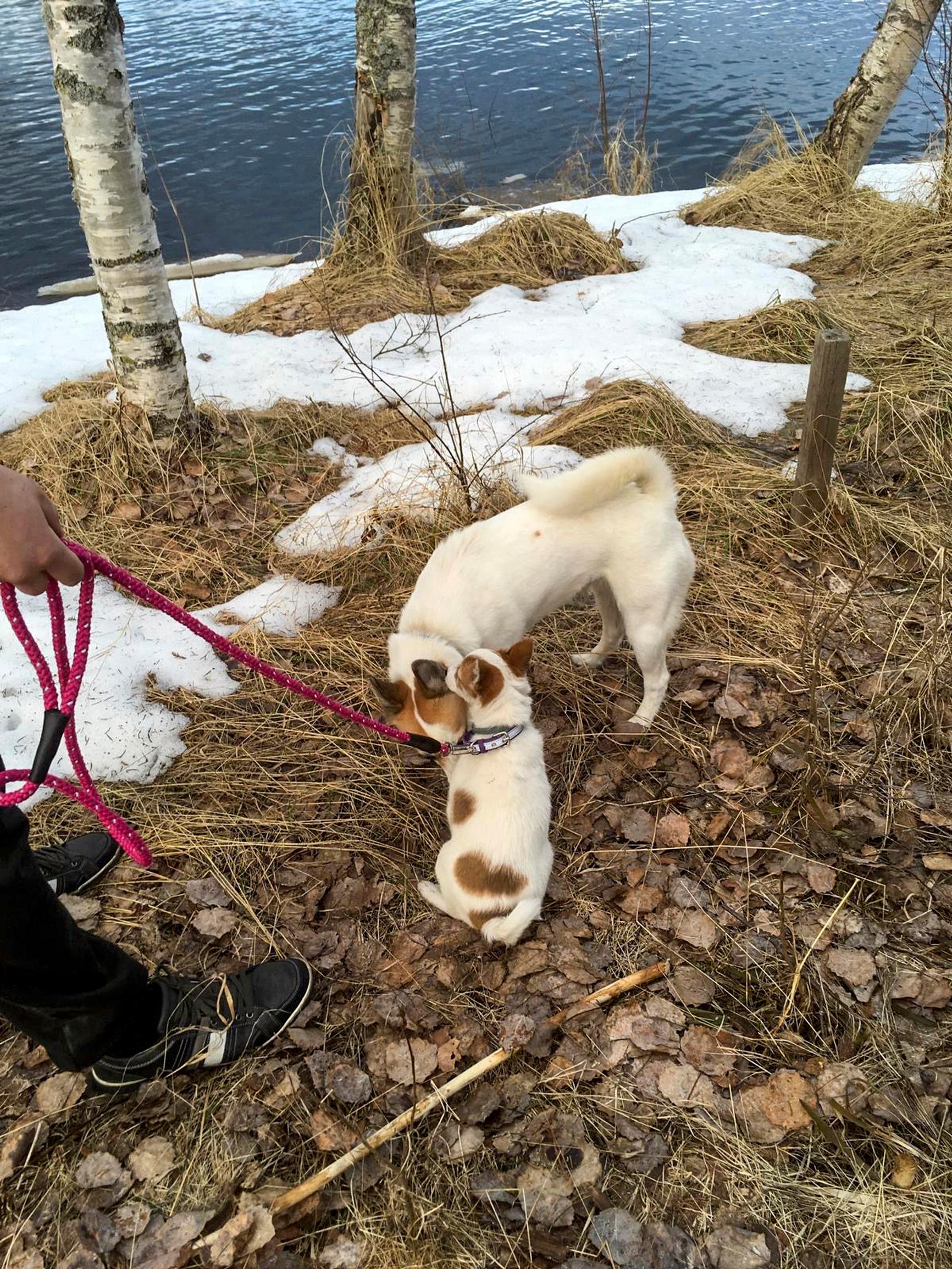 Naapurilla on samanlainen koira kuin minulla, ja välillä käytän sen pihalla. Mökille mennessä saatan myös käydä hänelle kaupassa.