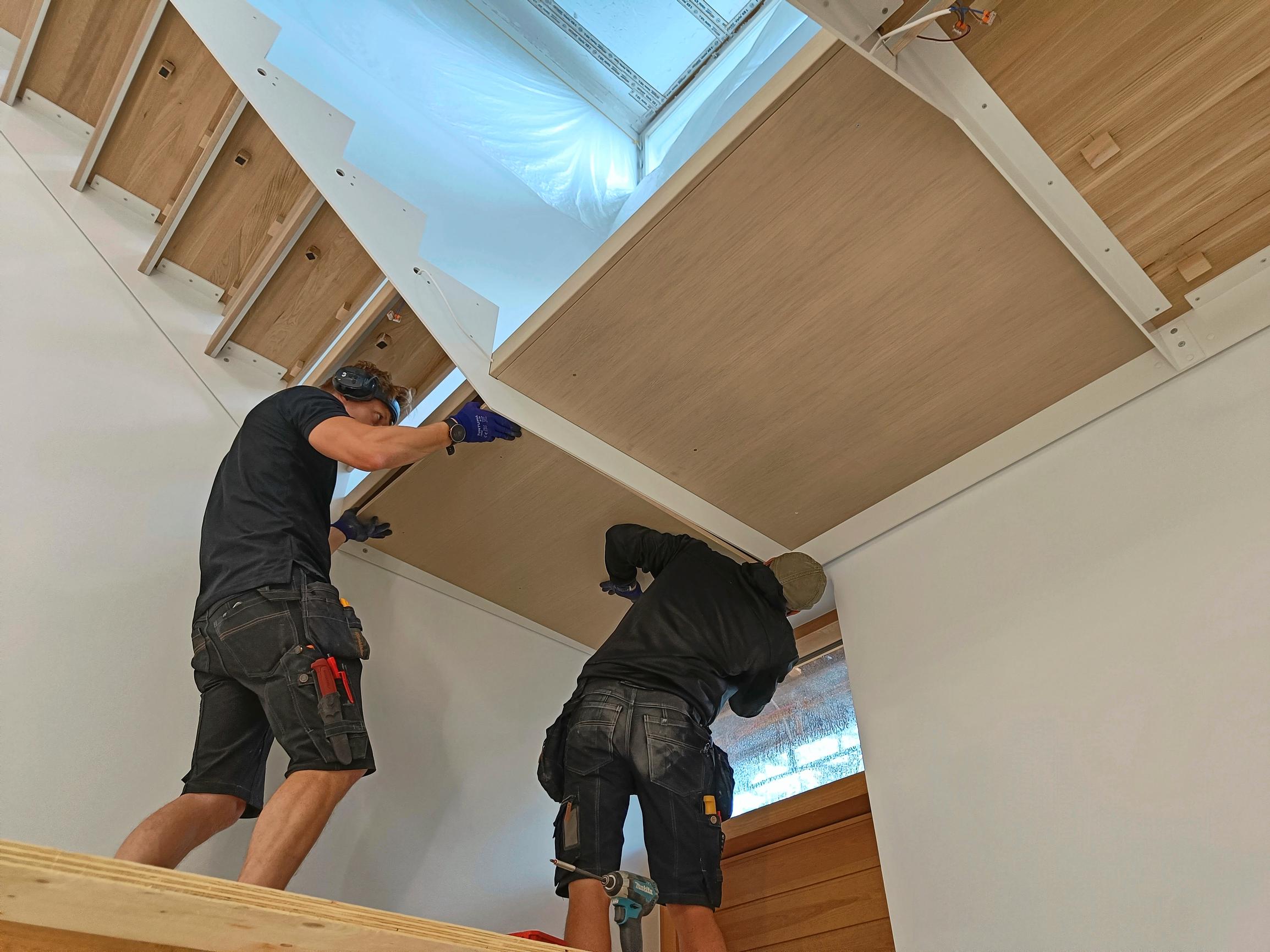 – Olisi tietysti ollut parempi asentaa ne yhtä aikaa, mutta haluttiin tehdä ullakolle meneminen vähän helpommaksi sisätöitä varten, Mikko selittää.
