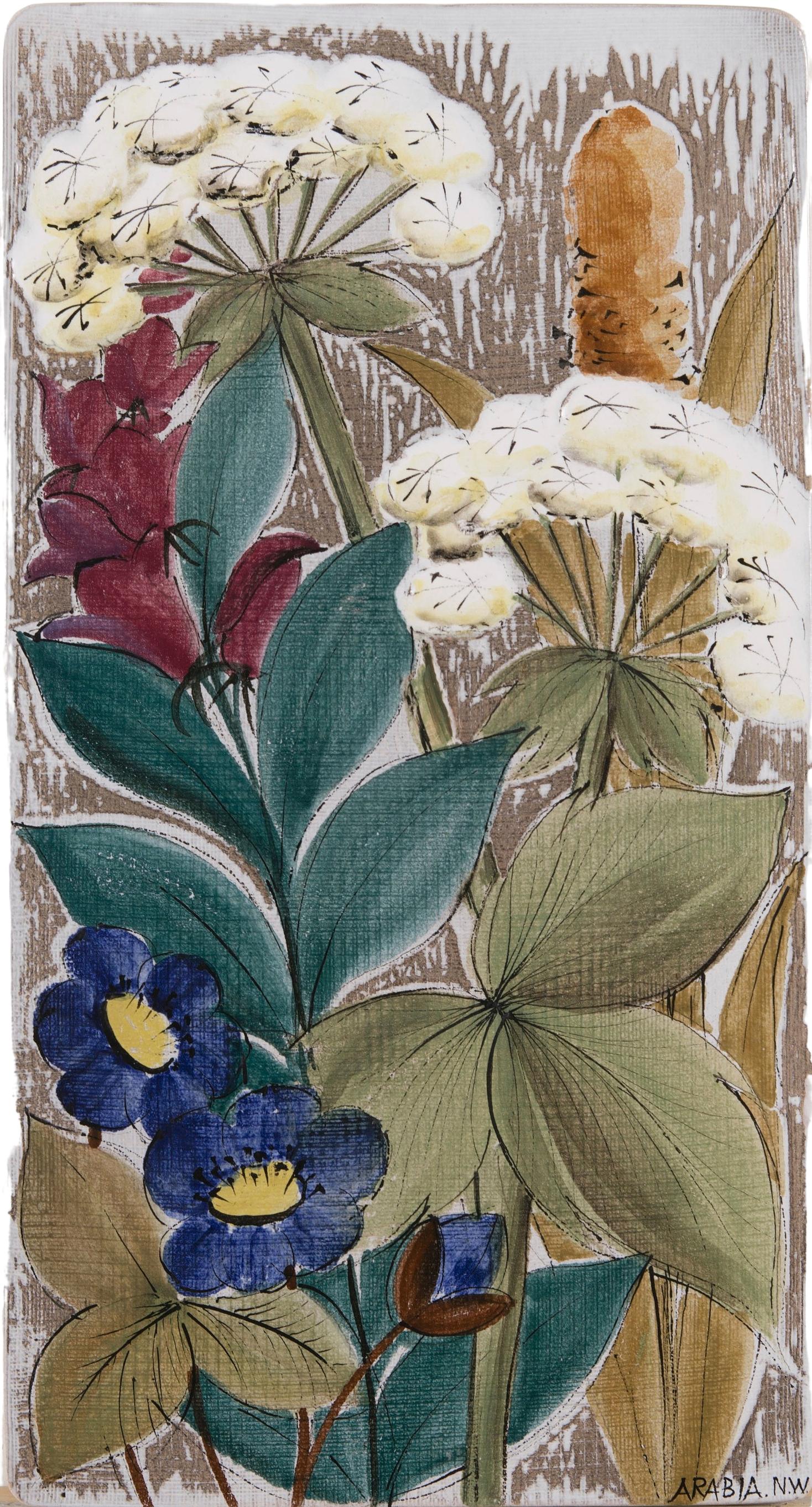 Naile Wafin ikuisti keramiikkateoksiinsa kukkien värit, muodot ja lumoavuuden. Hän suosi raaputustekniikkaa, joka antaa esineille himmeän ja pehmeän pintavaikutelman.