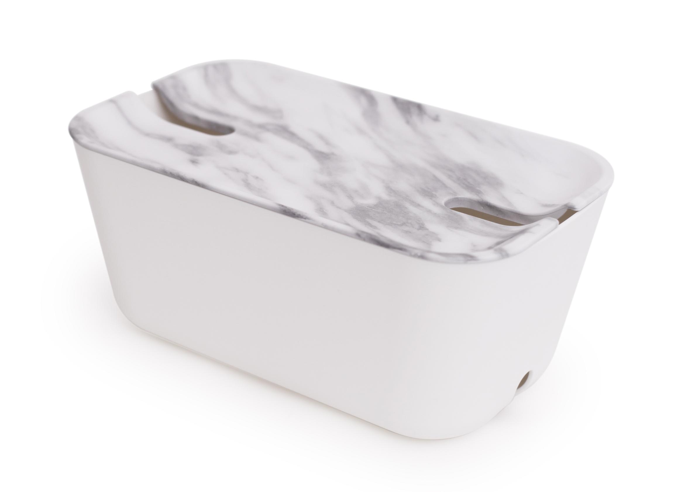Mikset sujauttaisi pitkää johtokerää laatikon kannen alta piiloon? Vakka-säilytin, Iittala.