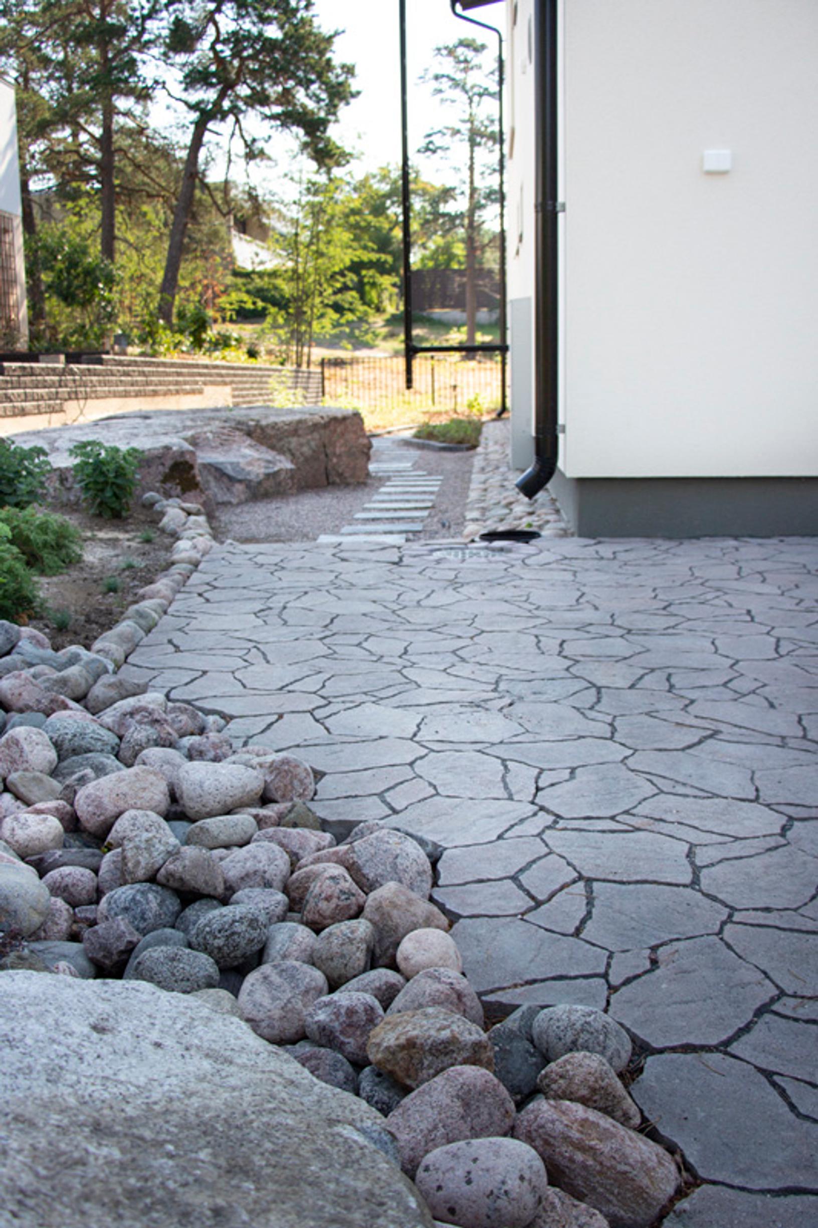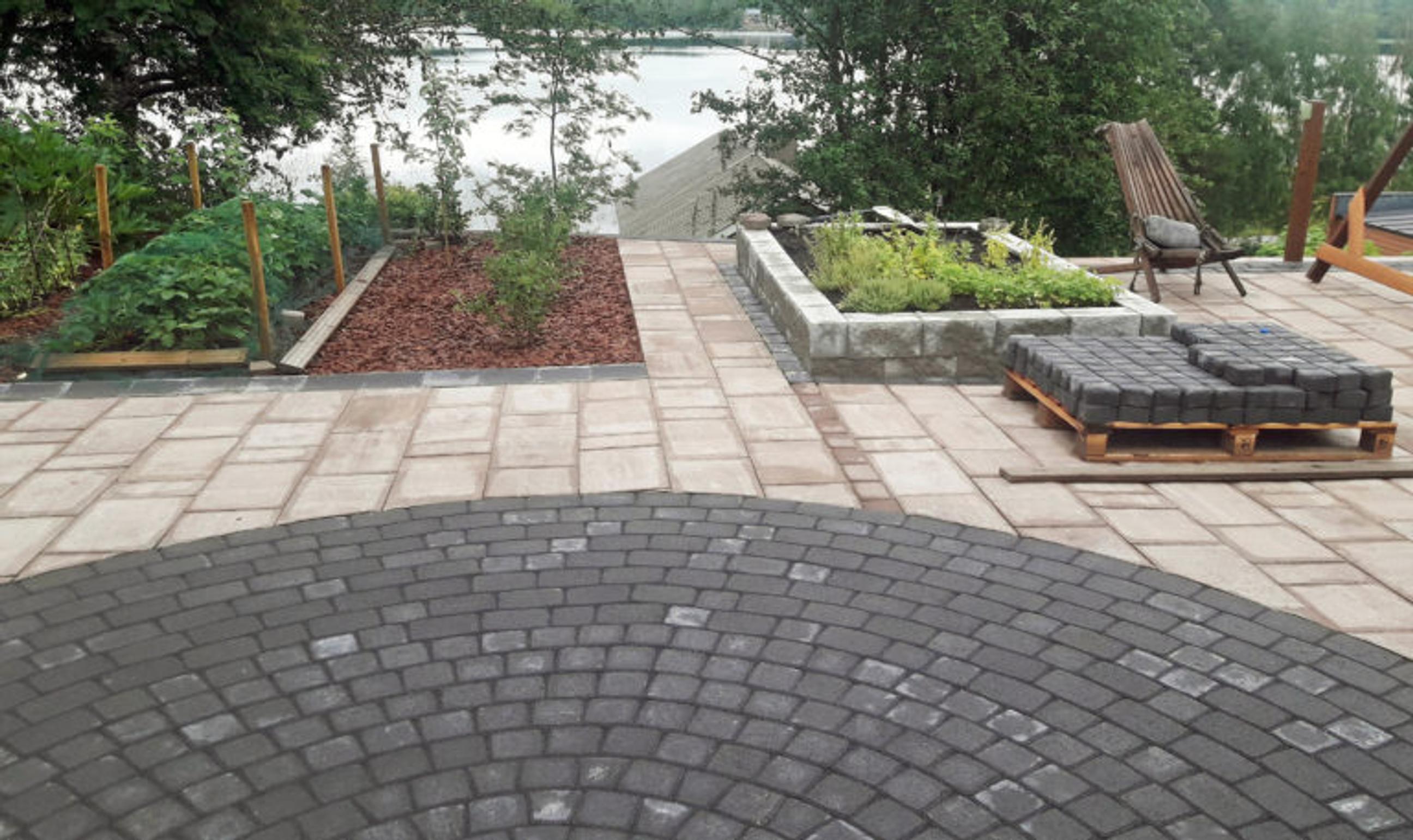 Kun maatyöt on tehty ja kivetysten pohjat, perustukset ja kasvualustat ovat kunnossa, voi pitää taukoa tai jatkaa kivetysten ja istutusten tekoon.