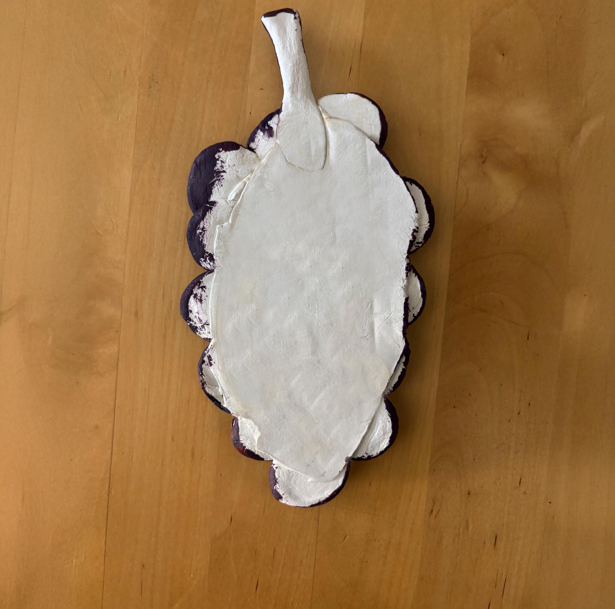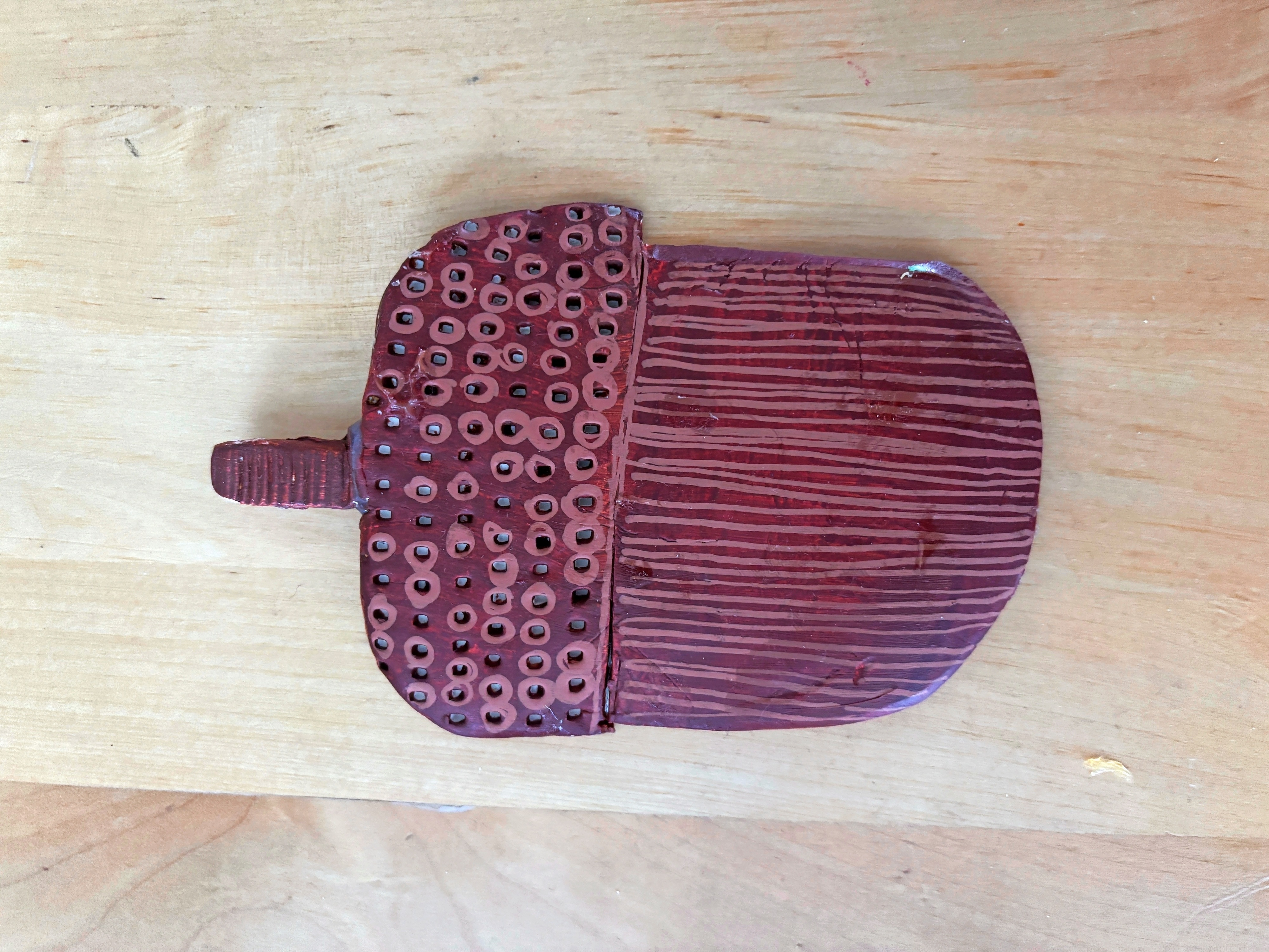 2. Kuvioi pinta haluamallasi tavalla: paina reikiä tai raaputa lehden kuviot. Viimeistele pinta sivelemällä tasaiset kohdat vedellä.