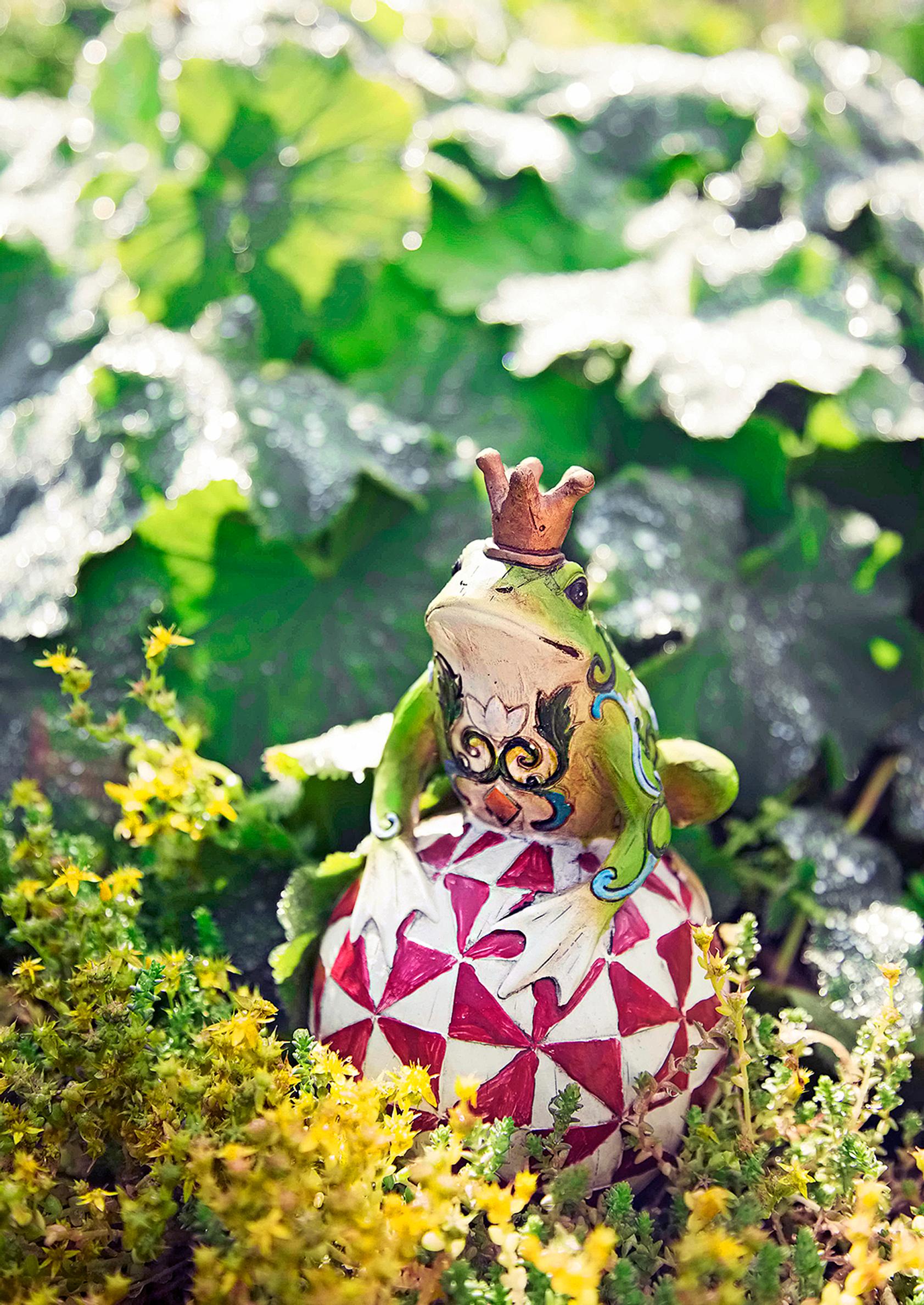 Keväällä puutarhassa ovat vallassa puna- ja oranssikukkaiset sipulikukat ja perennat, nyt heinäkuussa kukkivat värililjat, palavarakkaus ja muut räiskyvän väriset perennat. Jättipoimulehden raikkaan limetinvihreästä kukinnasta pidän myös kovasti, samoin kaikista valkoisista kukista. Kuunliljat ovat kuitenkin minulle kaikkein tärkeimpiä. Hämykuunlilja menestyy täällä parhaiten. Olen istuttanut sitä ja muita kuunliljalajikkeita noin 150 taimea. Keltamaksaruohon matalat mättäät peittävät penkkien reunoja.