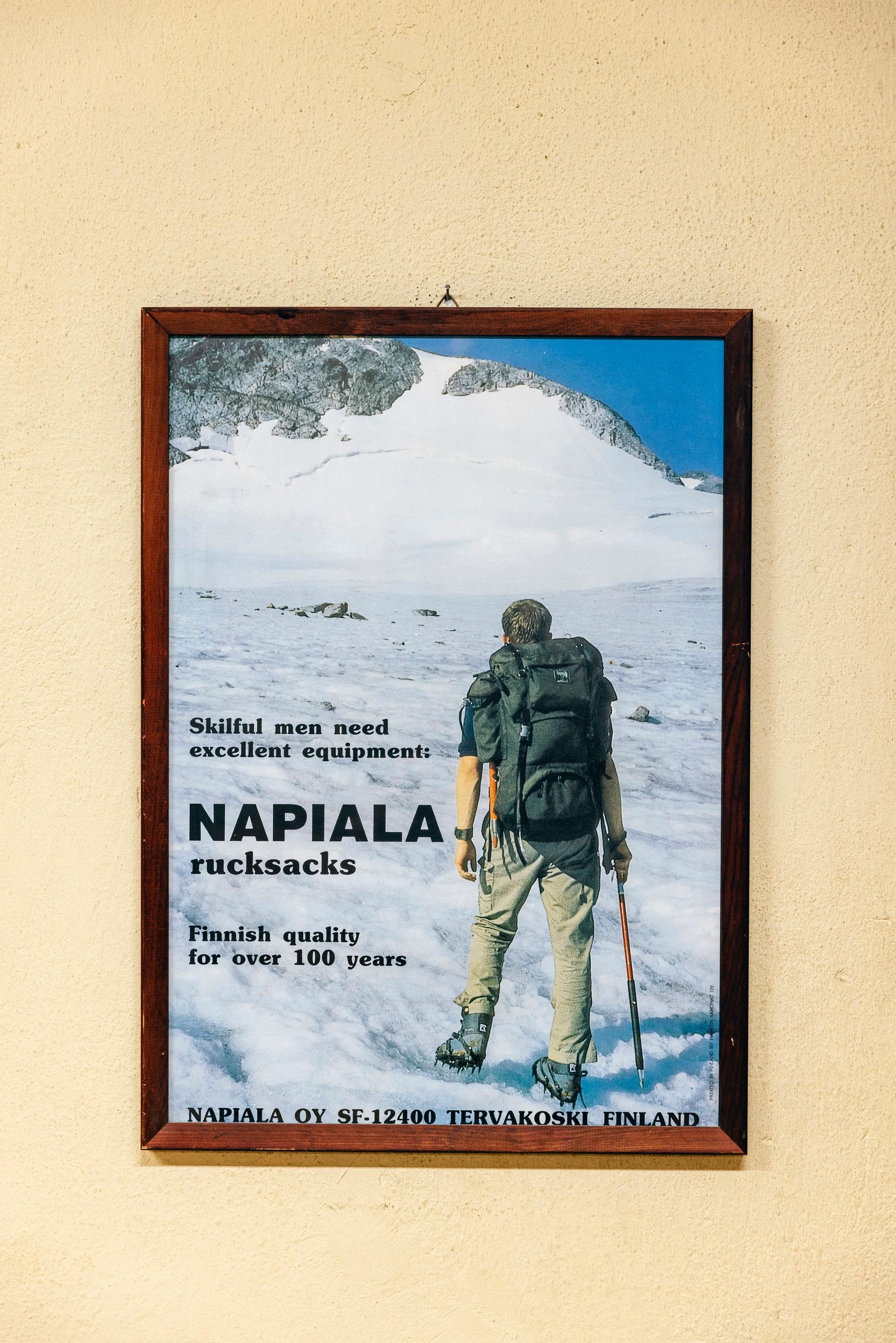 Porraskäytävään on ikuistettu hieman muunneltuna tehtaan käyttämä logo. Eräällä seinällä silmiin osuu kehystetty punainen nahkahame, tehtaan tuotos, jonka Oton äiti hankki lahjaksi. Vastakkaiselle seinälle on ripustettu muistokollaasi muun muassa repuista, joista tehdas oli aikoinaan tunnettu. Paikallisilla on ollut paljon muistoja, joita on ollut ihana kuulla.