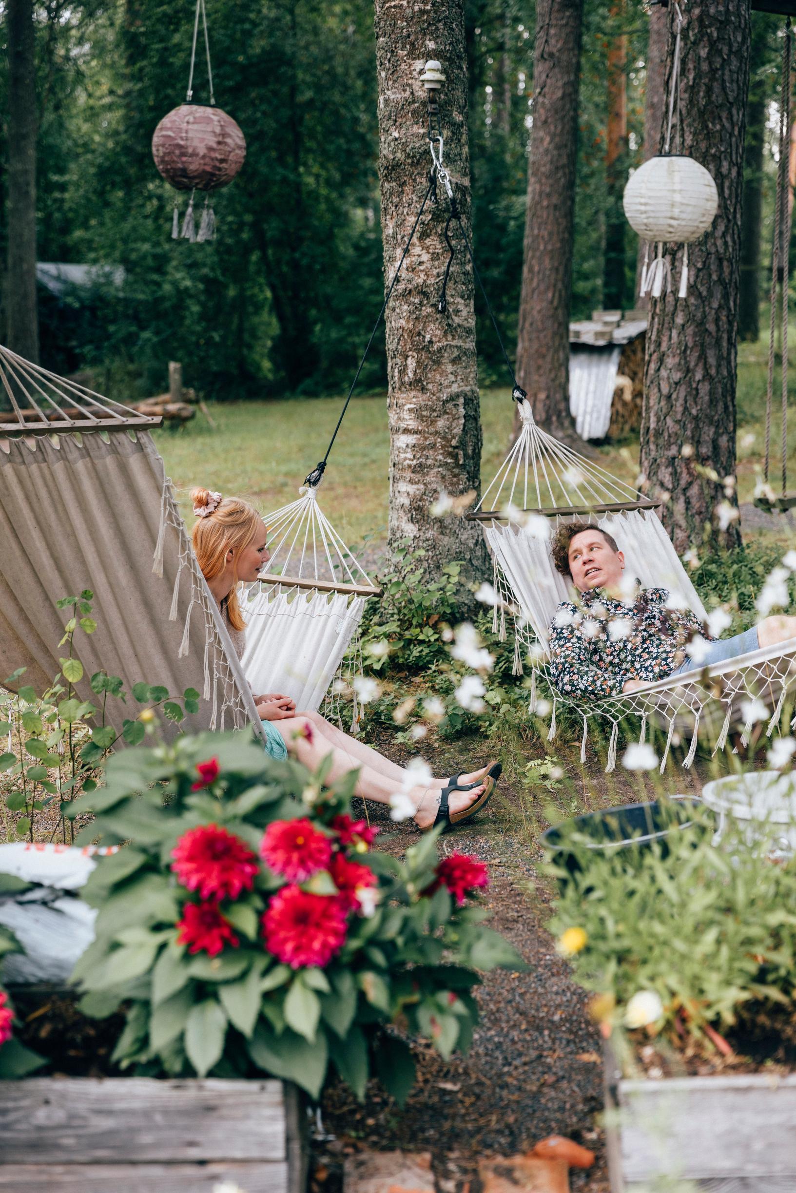 Rakennusalalla työskennellyt Otto pitää remontoinnista ja käsillä tekemisestä. Jos hän innostuu, idea on kohta toteutettu. Pihalla ei voikaan olla huomaamatta Oton rakentamaa, puumajasta inspiraationsa saanutta persoonallisen upeaa saunaa.