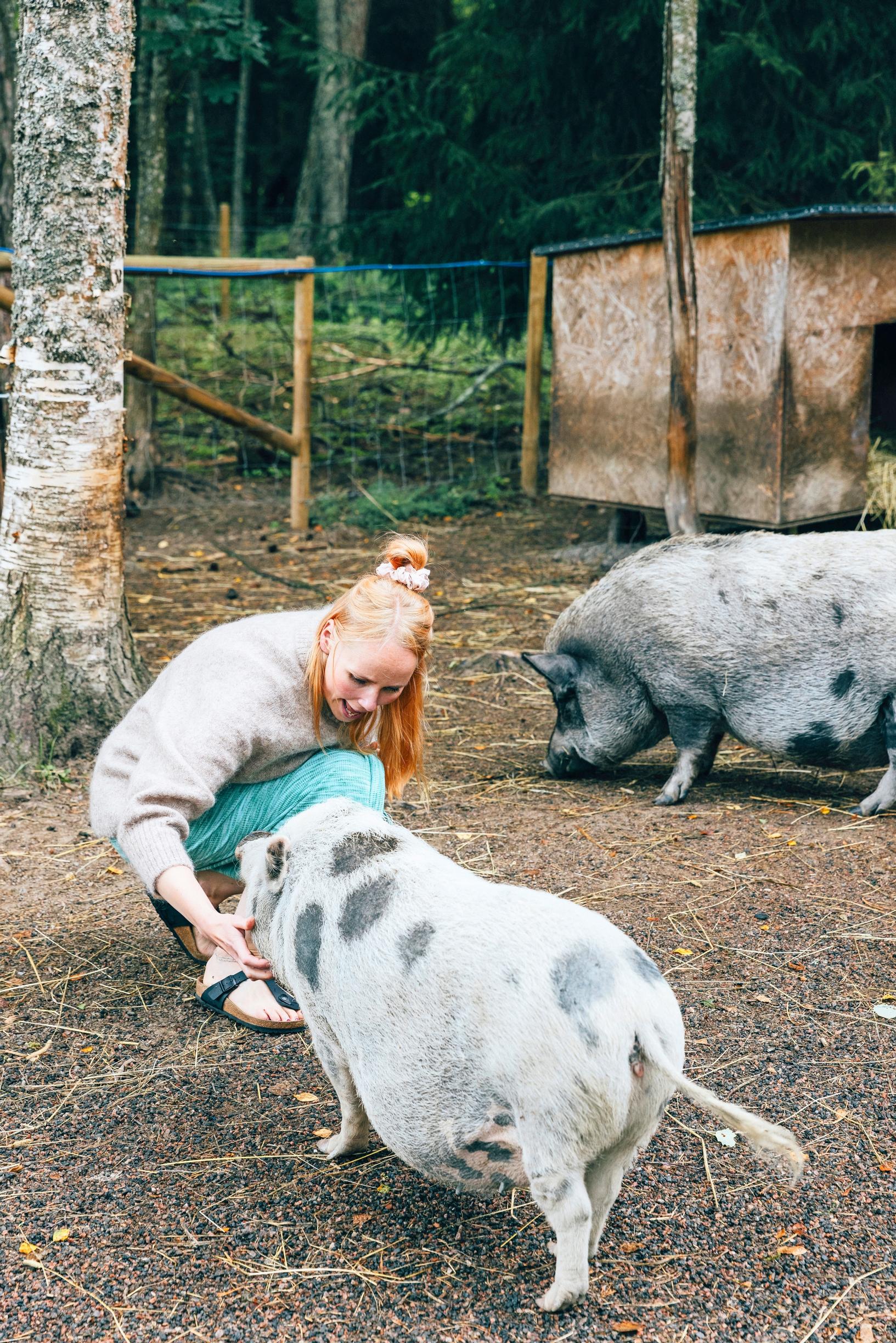 – Elämäntapaamme kuuluu tämä kiinteistö, ihmiset, eläimet ja luonto. Elämme etiikan arvojen mukaisesti siten, että kaikki ovat yhtä arvokkaita. Moni eläin on pelastettu teuraaksi joutumiselta tai muutoin lopettamiselta, Janita Horppu kertoo.