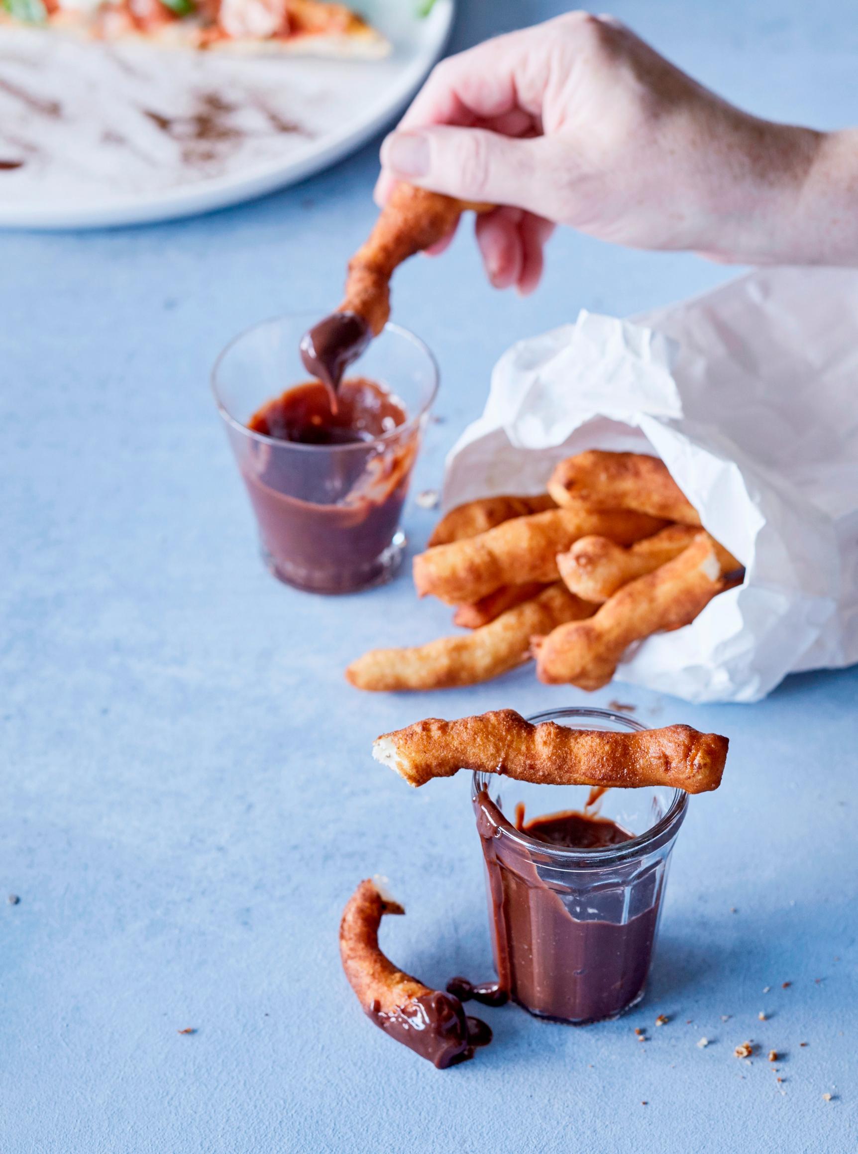 Pizza liittyy siihenkin! Varaa kaupasta purkillinen Nutellaa ja ruokakermaa ja sekoita niistä nutelladippi. Leikkaa jäljelle jääneestä pizzataikinasta suikaleita ja uppopaista ne rypsiöljyssä. Sitten vain dippailemaan!