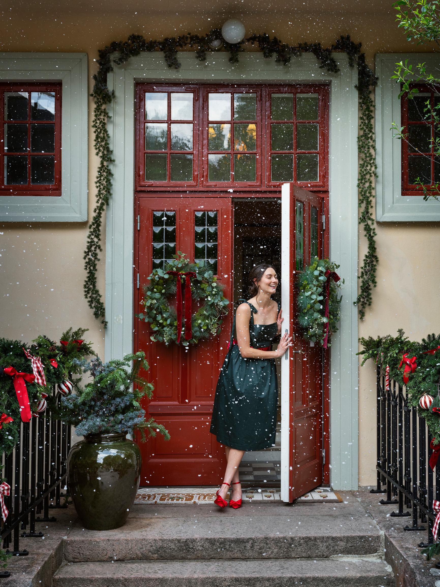 – Olen nähnyt somessa ihanan idean, joka sopii pienempäänkin kotiin: oviaukkoon tai käytävälle kiristettävään suihkuverhotankoon voi ripustaa köynnöksen, jolloin se ei vie lattiatilaa ja tuo heti joulutunnelmaa! Nylander vinkkaa.