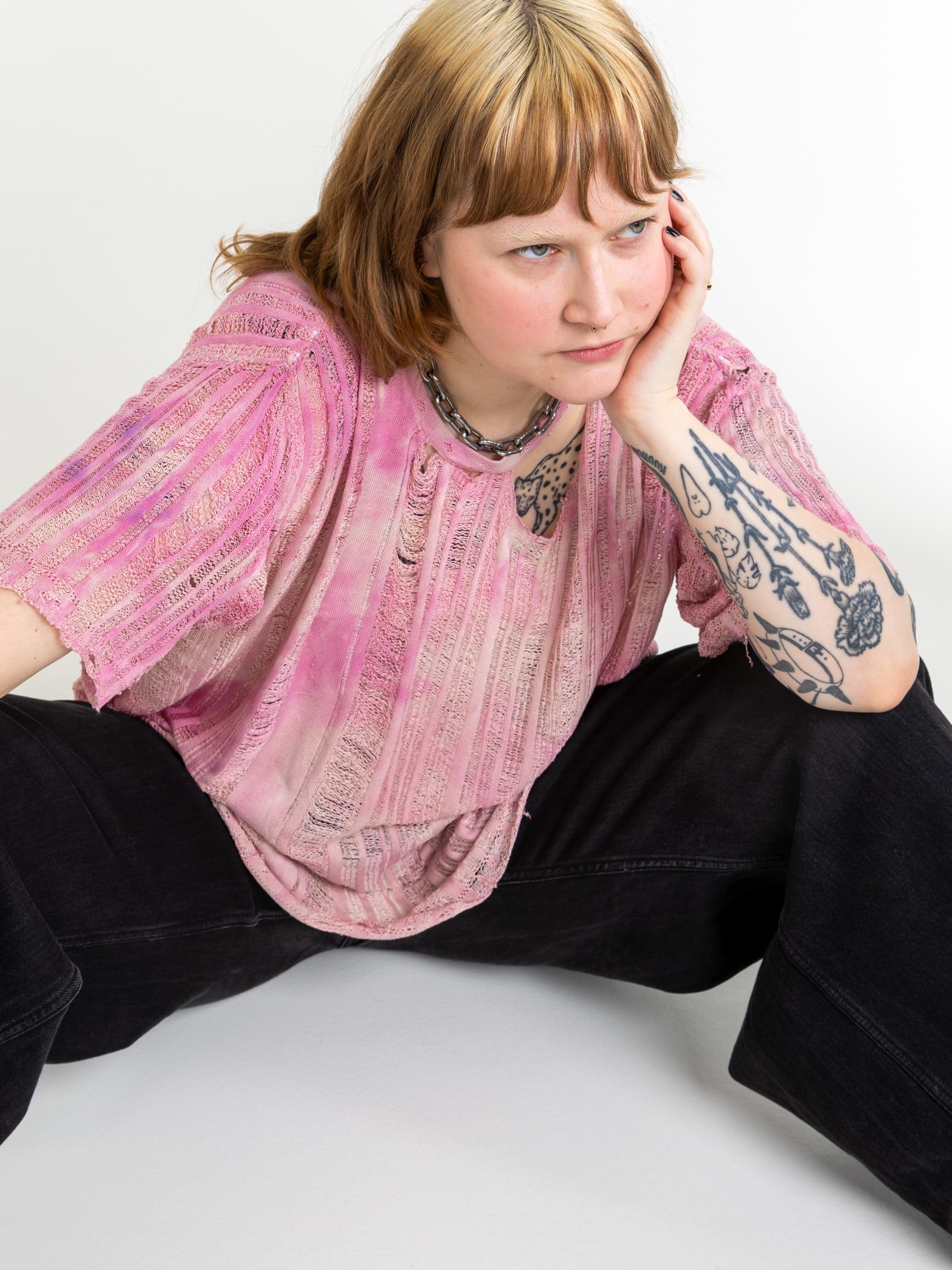 Voit kokeilla, kuinka pitkälle uskallat mennä reikien ja purkamisen kanssa. Sommittele isompia reikiä neuleeseen esimerkiksi helmaan ja pääntielle. Epäsymmetriset yksityiskohdat lisäävät luonnetta vaatteeseen. On myös hauskaa opetella ulos siististä ja säännöllisestä jäljestä.