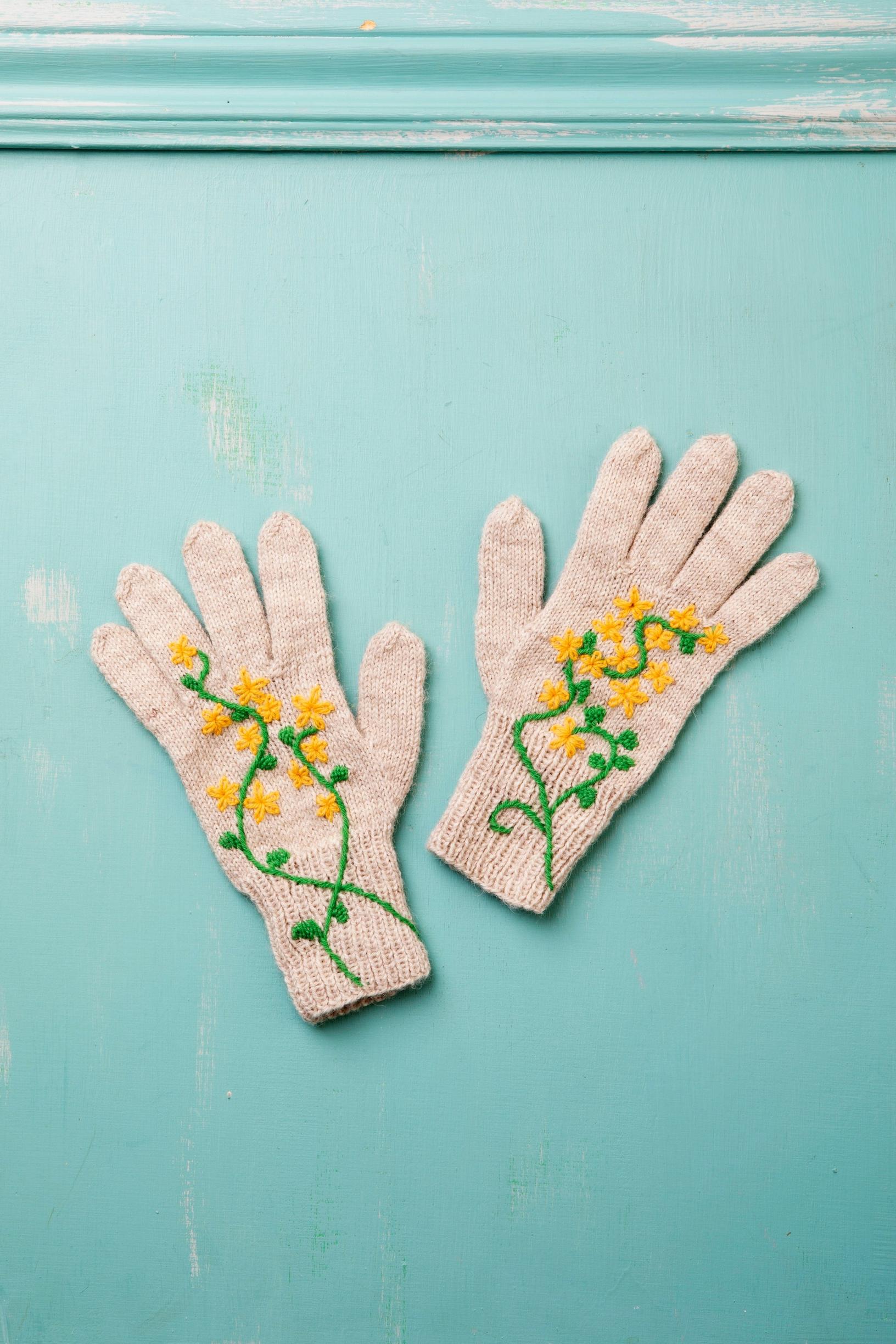 Kevät on käsillä! Tee itse neulotut sormikkaat, joita koristavat kirjotut kukkaköynnökset