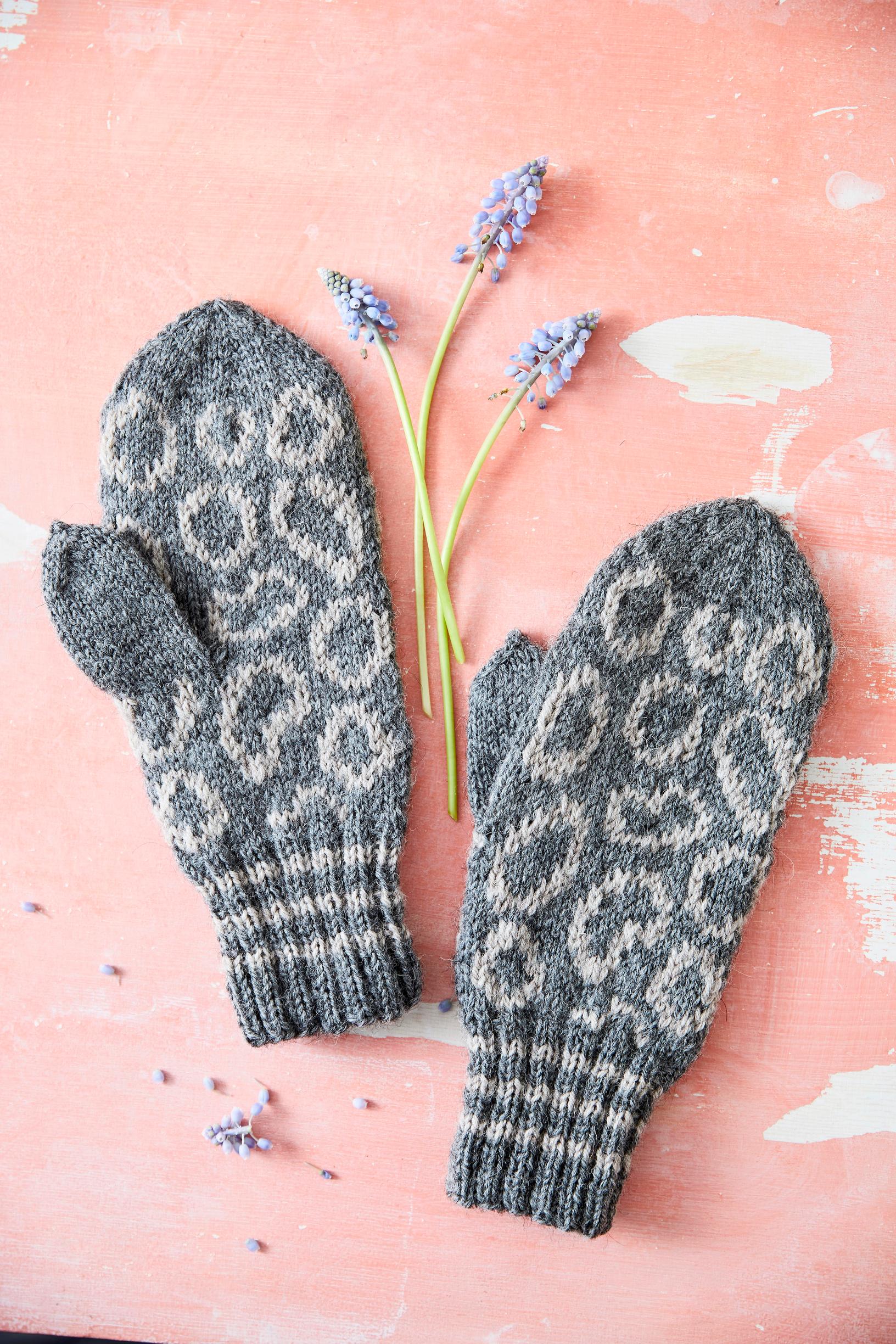 Neulo vasemman lapasen peilikuvaksi ja tee peukaloaukko kolmannen puikon alkuun.