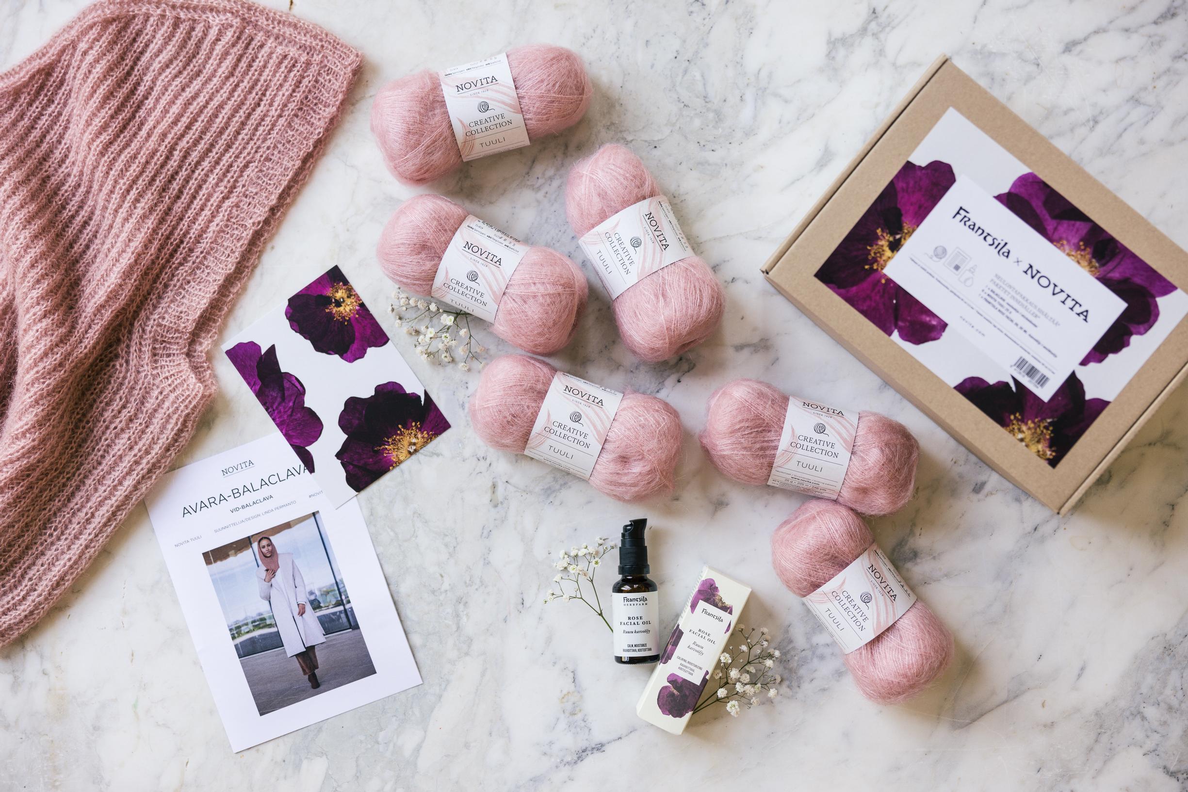 Inspiroiviin lahjapakkauksiin ihastuvat niin neulonnan konkarit kuin vasta-alkajatkin. Frantsila x Novita Neulontaboksi kietoo lahjansaajan ruusuiseen ylellisyyteen, ja Hiihtosukkaboksi lämmittää varmasti neulovia ja sivakoivia sukulaisia. Talven hittipipo taas syntyy pehmeästä mohairista, joka on täydellinen yhdistelmä arjen luksusta ja lämpöä. I’m so Mohair -piposetti on nyt saatavilla neljässä uudessa herkullisessa värissä.