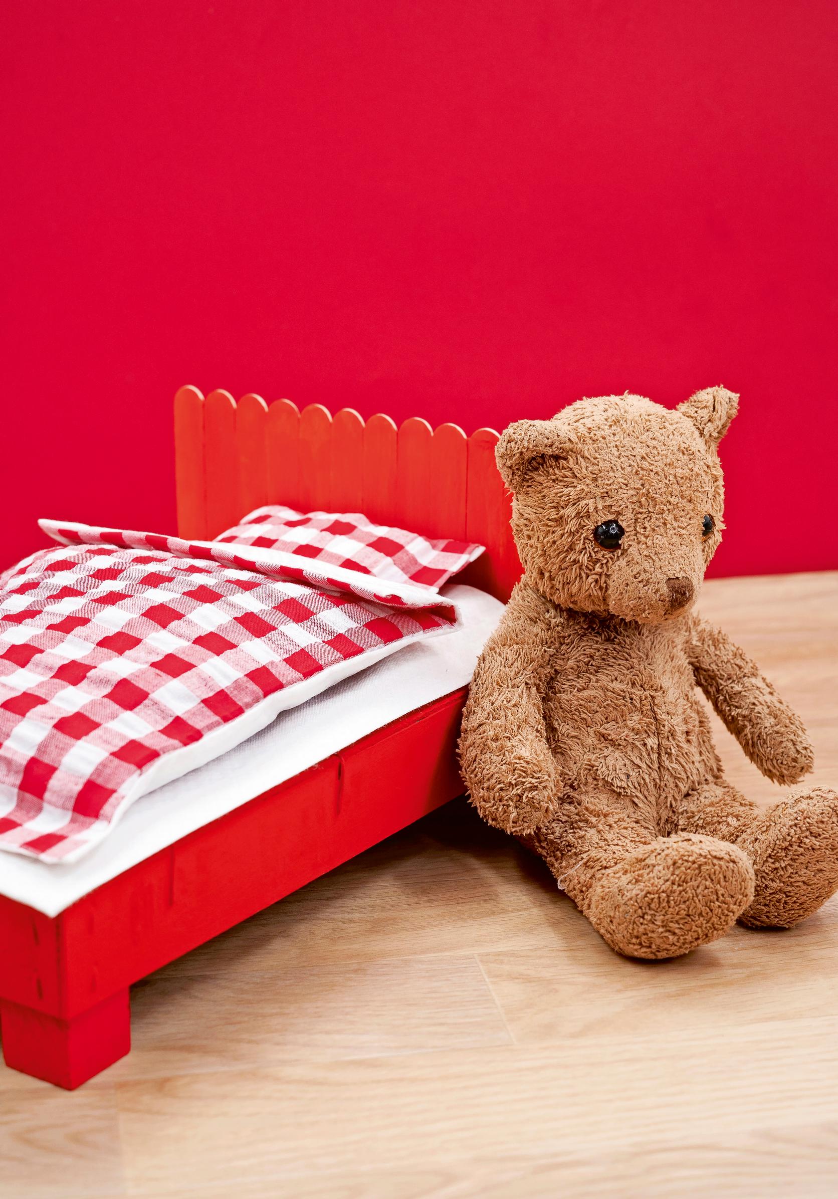 Nuken sänky valmistuu helposti laatikosta. Maalaa laatikko saajan lempivärillä, askartele sängynpääty jätskitikuista ja tee myös lakanat ilman ompelua.
