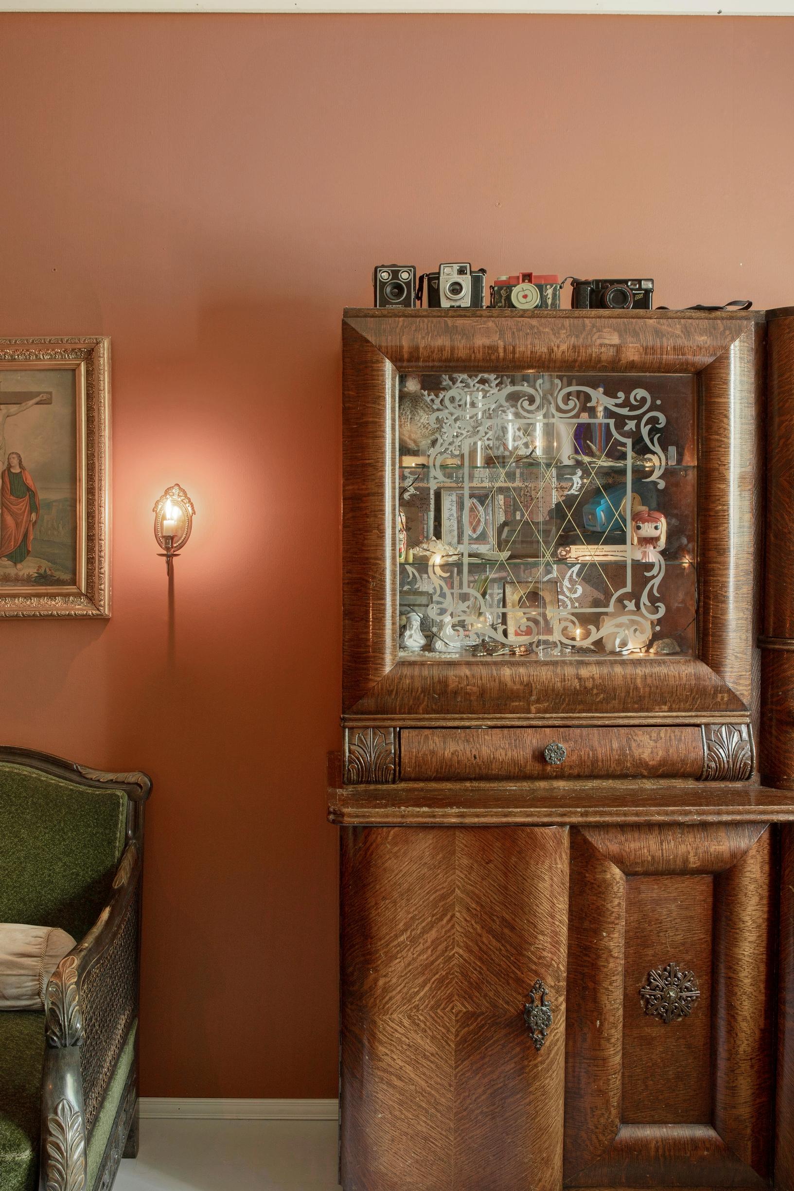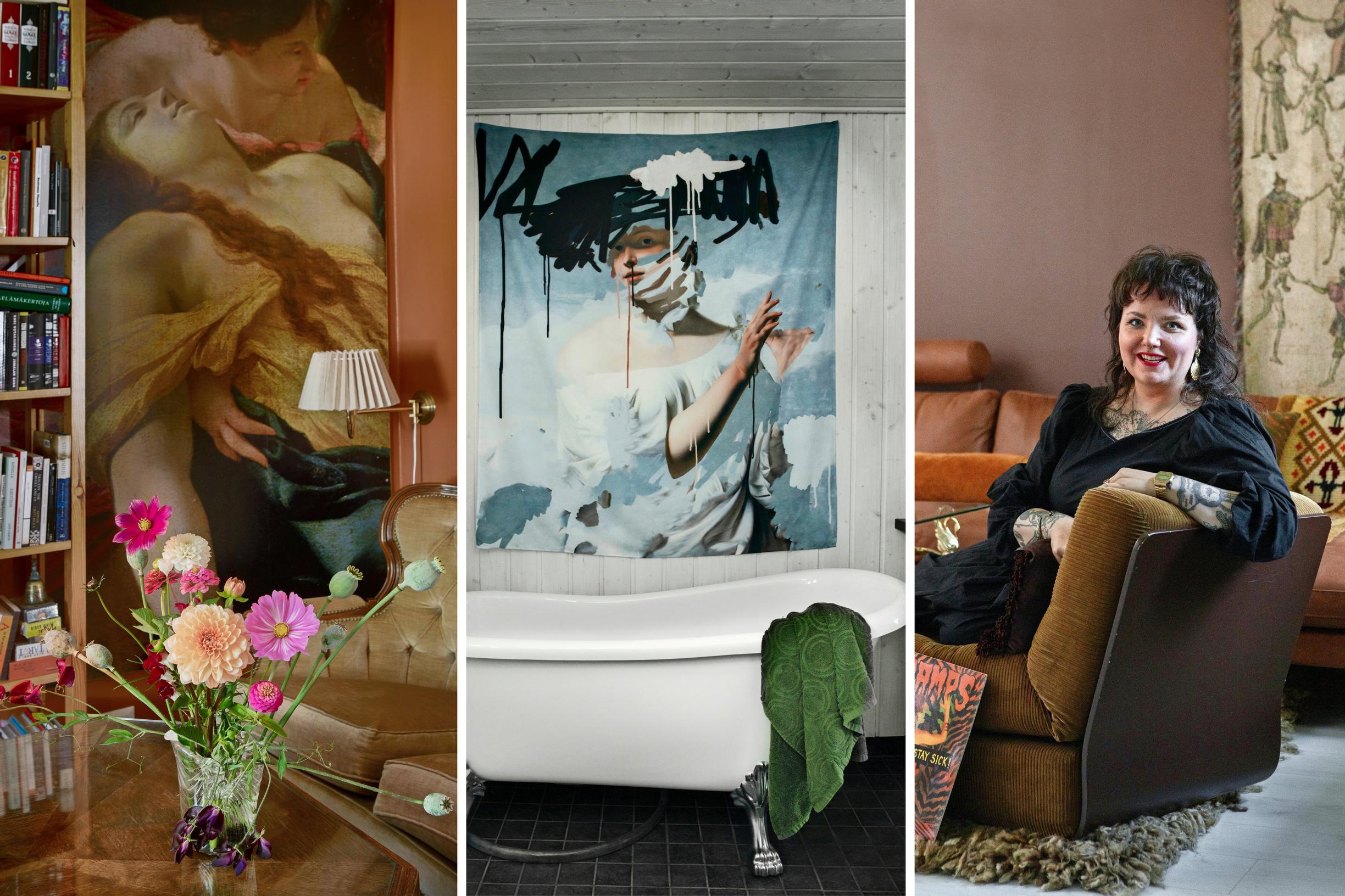 Kotimme ei ole puhtaasti mitään yhtä tyyliä, mutta 1970-luku on alkanut hiipiä sisustukseen. Pidän paljon myös italialaisesta renessanssiajan taiteesta, Bachin kantaateista ja vanhoista kauhuelokuvista. Ne herättävät minussa paljon tunteita ja fiiliksiä. Olen halunnut tuoda samaa tunnelmaa myös tänne.