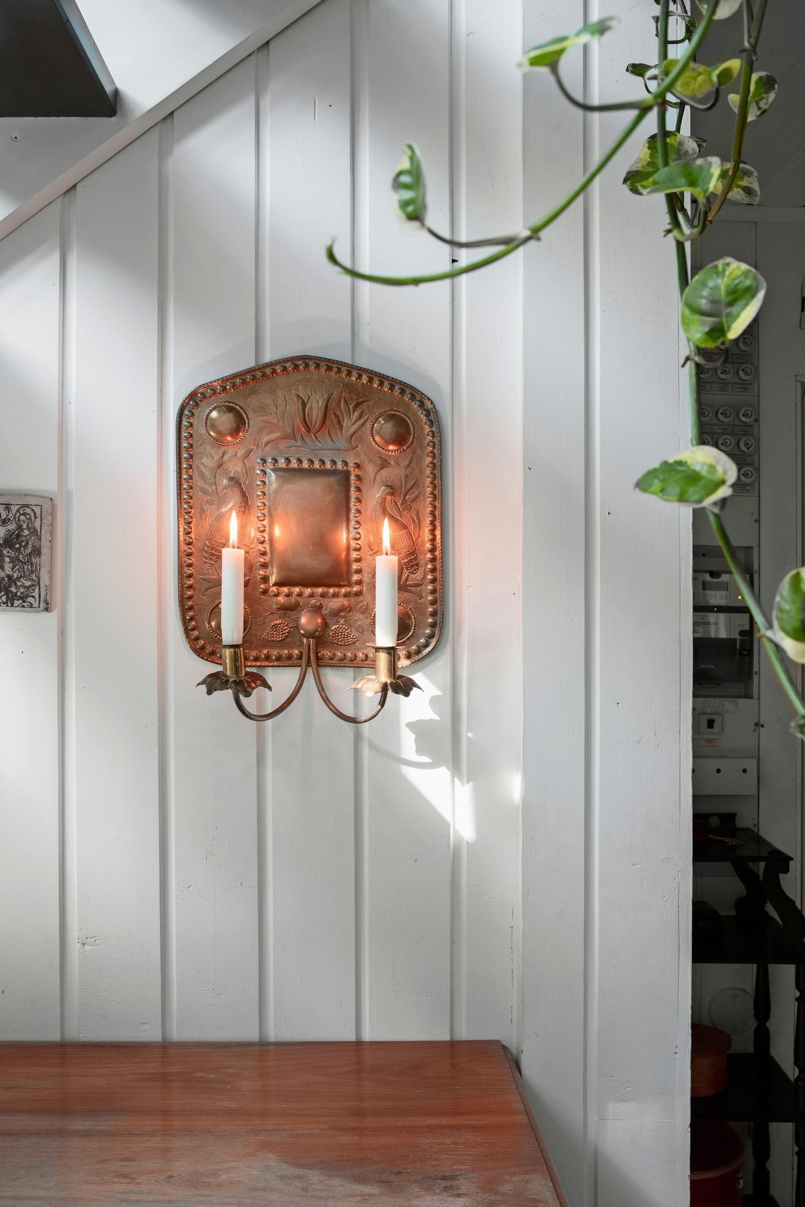 Tunnelmallinen pöytävalaisin on kuparista ja lasista valmistettu. Se on Nuusan papan hiihtokisoista 70-luvulla saama palkinto. Seinät on maalattu Tikkurilan tummanruskealla Coffee in China -sävyllä. Seinällä on vanhoja punk-julisteita.