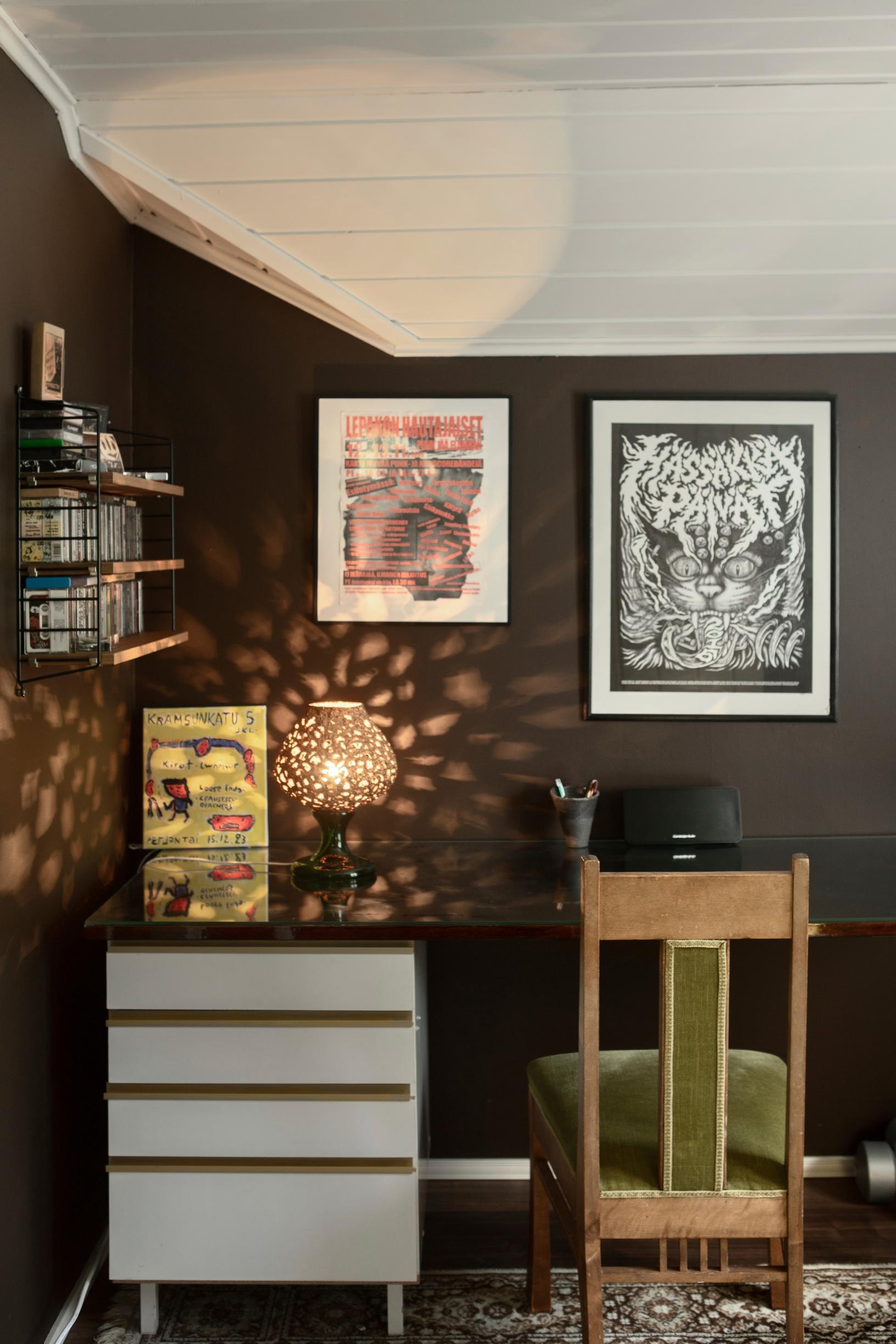 Punk-asenne näkyy kodissamme myös siten, että se on ikuisessa prosessissa. Valmista tuskin tulee koskaan, ja olemme tehneet asioita kaksi, kolmekin kertaa uudelleen. Olen oppinut sietämään keskeneräisyyttä.