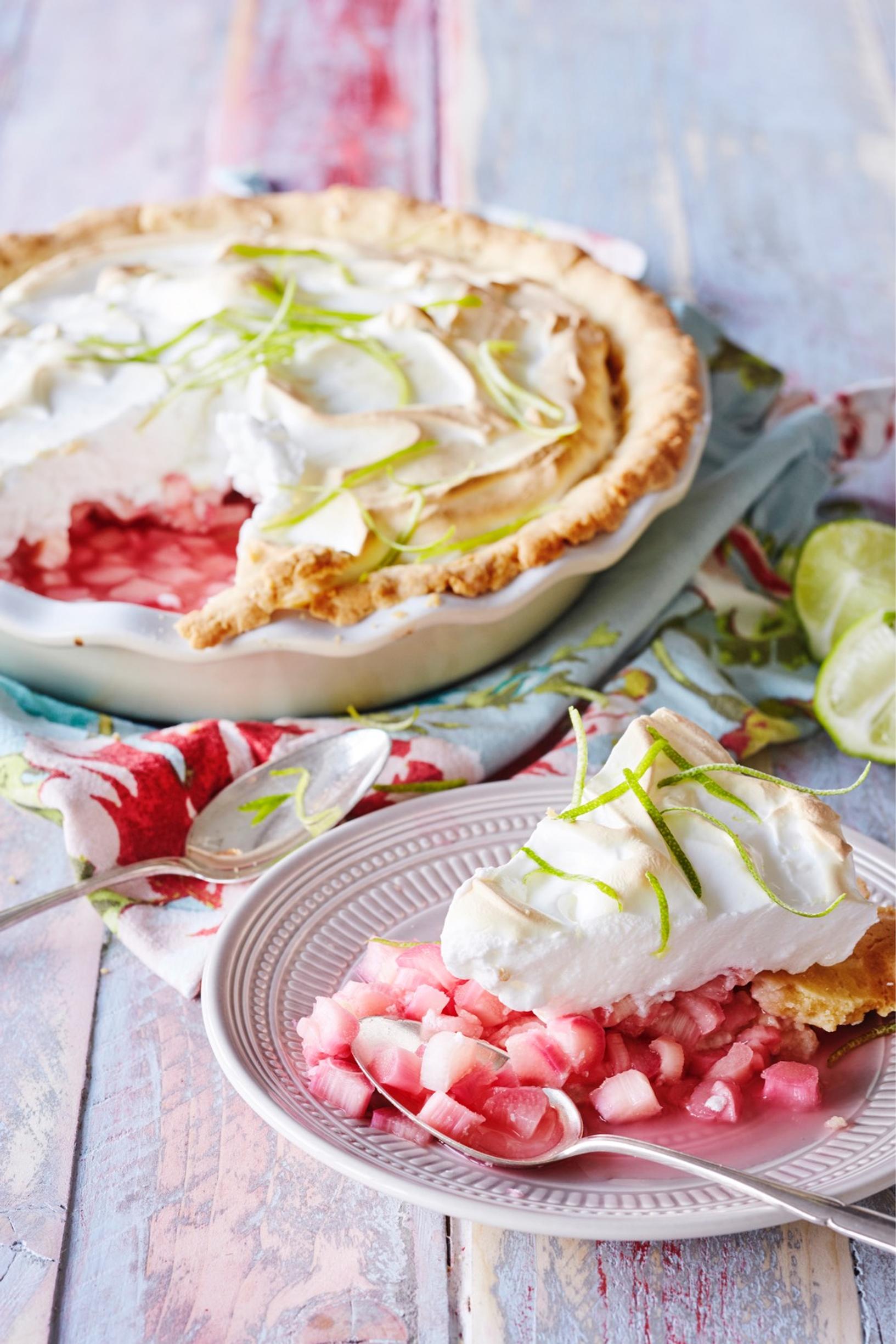 Vaihda klassisen sitruunapiiraan täyte raparperiin! Tuloksena on hurmaavan herkullinen, juuri sopivasti makea raparperi-marenkipiirakka.
