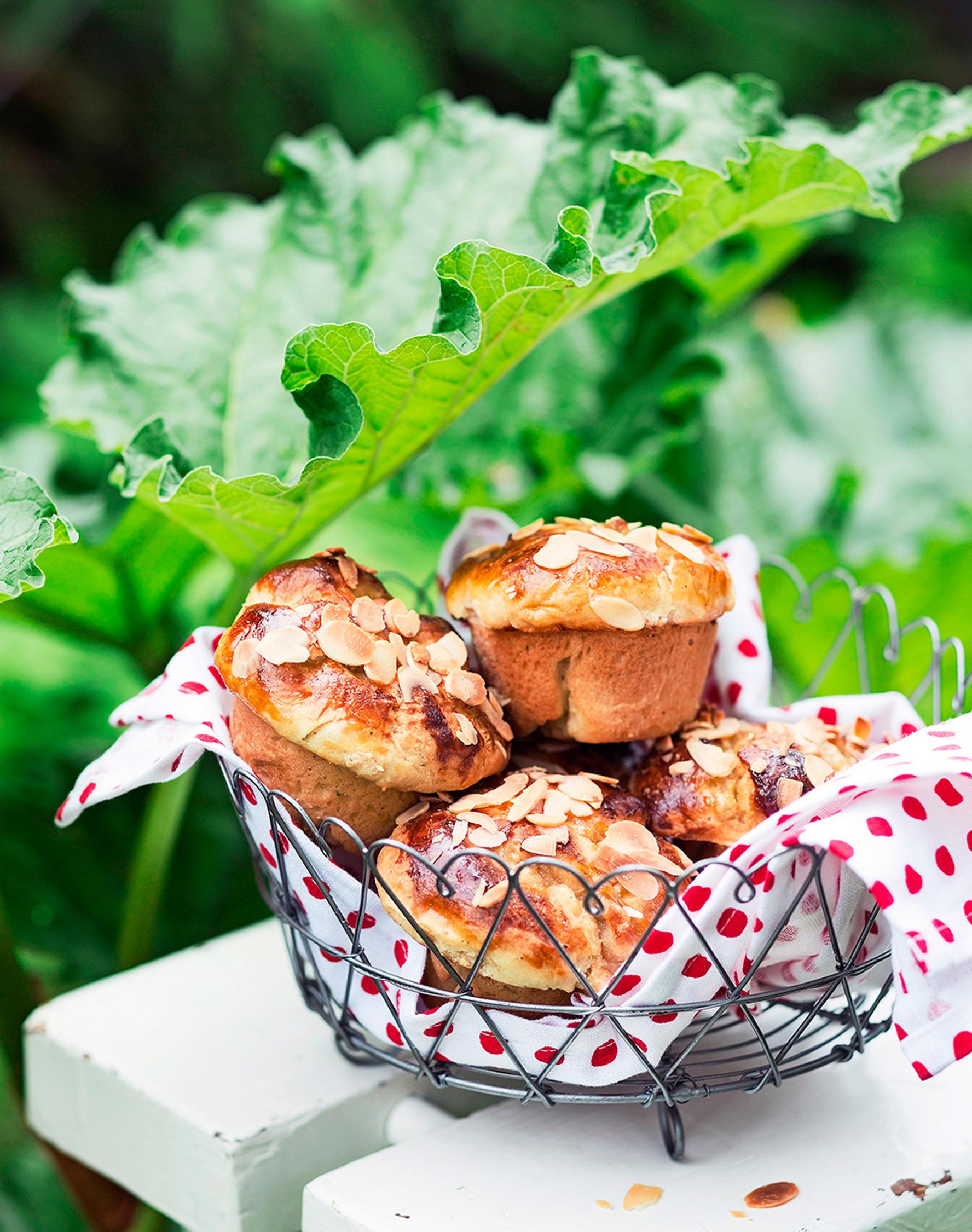 Ihanan makea raparperitäyte mehevöittää klassiset briossit. Kuohkeat Raparperi-mantelibriossit ovat nappivalinta esimerkiksi viikonloppubrunssille.