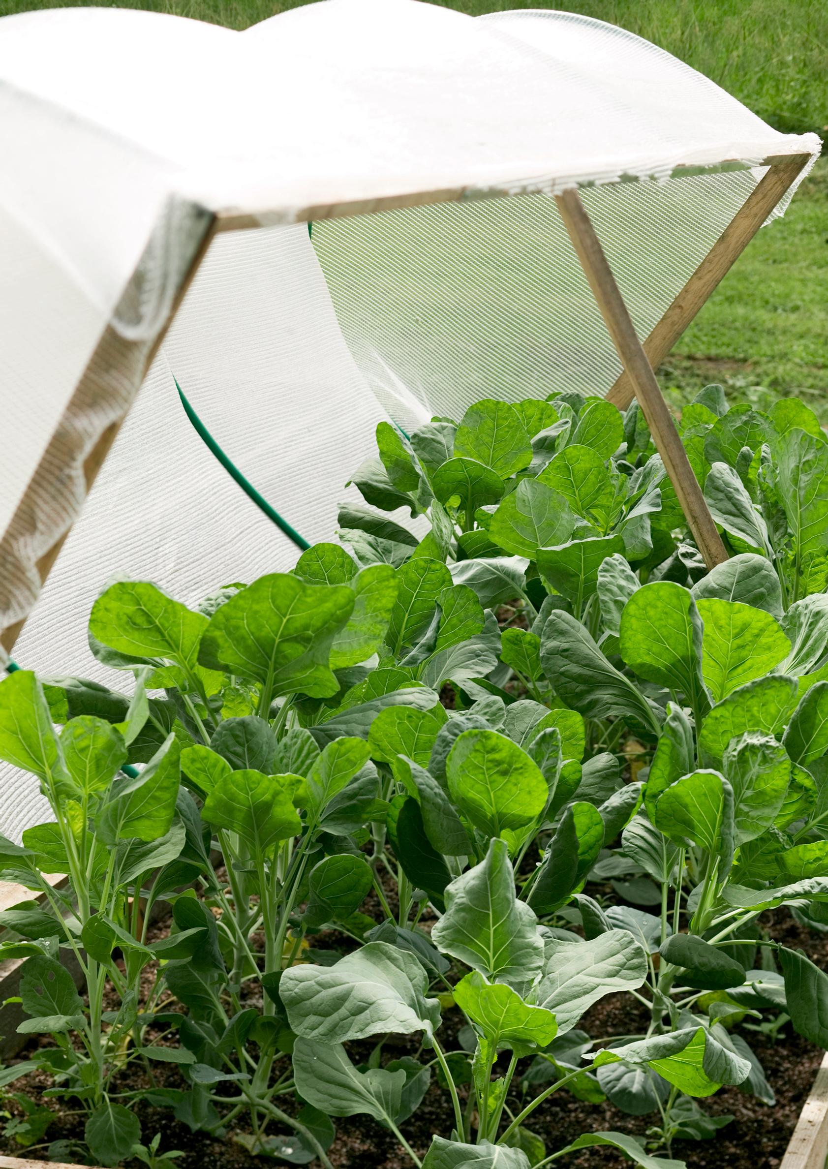 2. Suojaa taimi kirppoja ja kaalikoita vastaan heti istutuksen jälkeen. Hyönteisverkko päihittää kasvuharson, sillä se voi olla pitkään kasvuston päällä. Kasvulle paras lämpötila on +15–20 astetta. Poista harso, kun kukinto on halkaisijaltaan parisenttinen.
