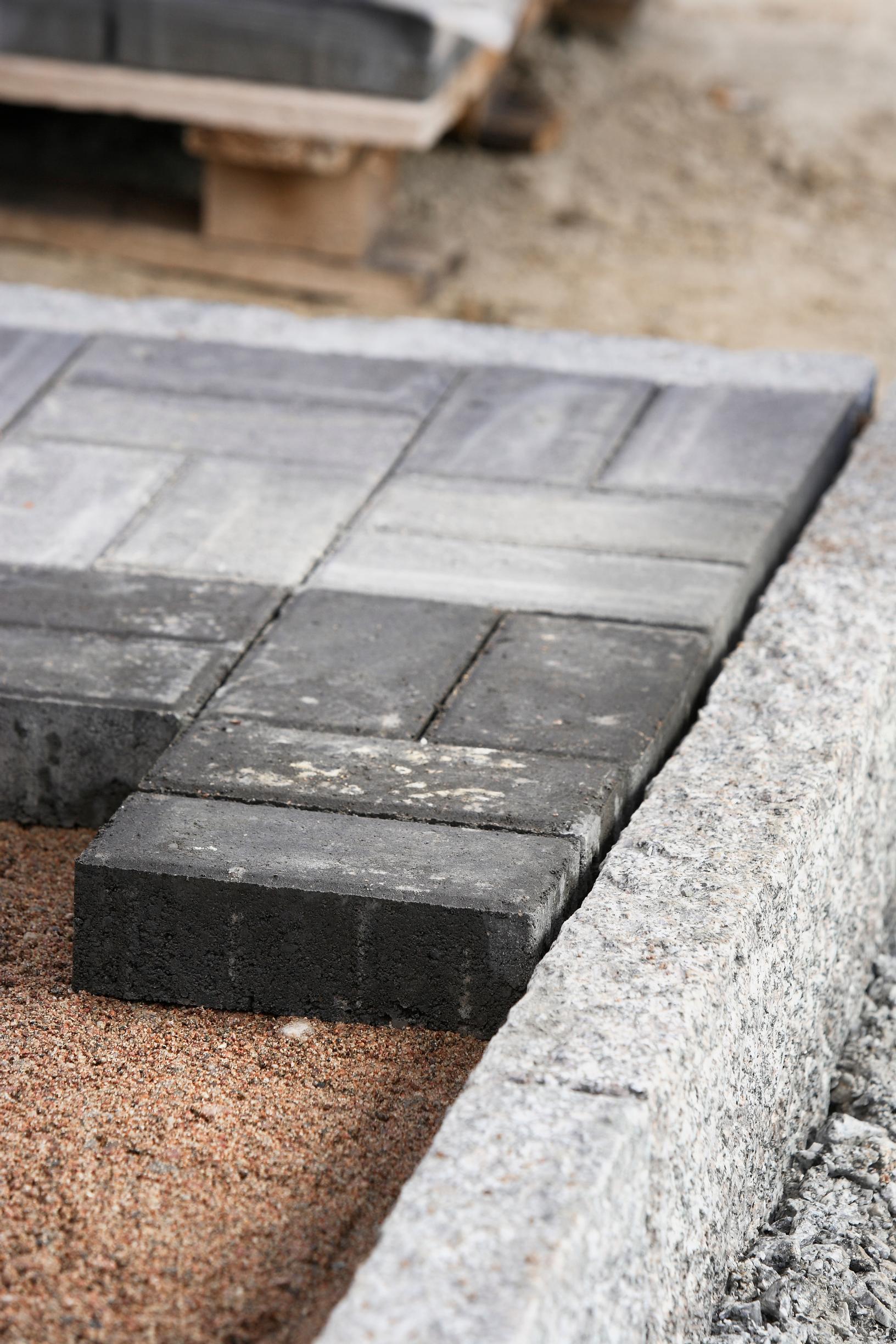 6. Saumaa betonikiveys kuivalla hiekalla, jonka raekoko on 0,1–0,6 millimetriä. Harjaa hiekka kiveyksen saumoihin huolellisesti.