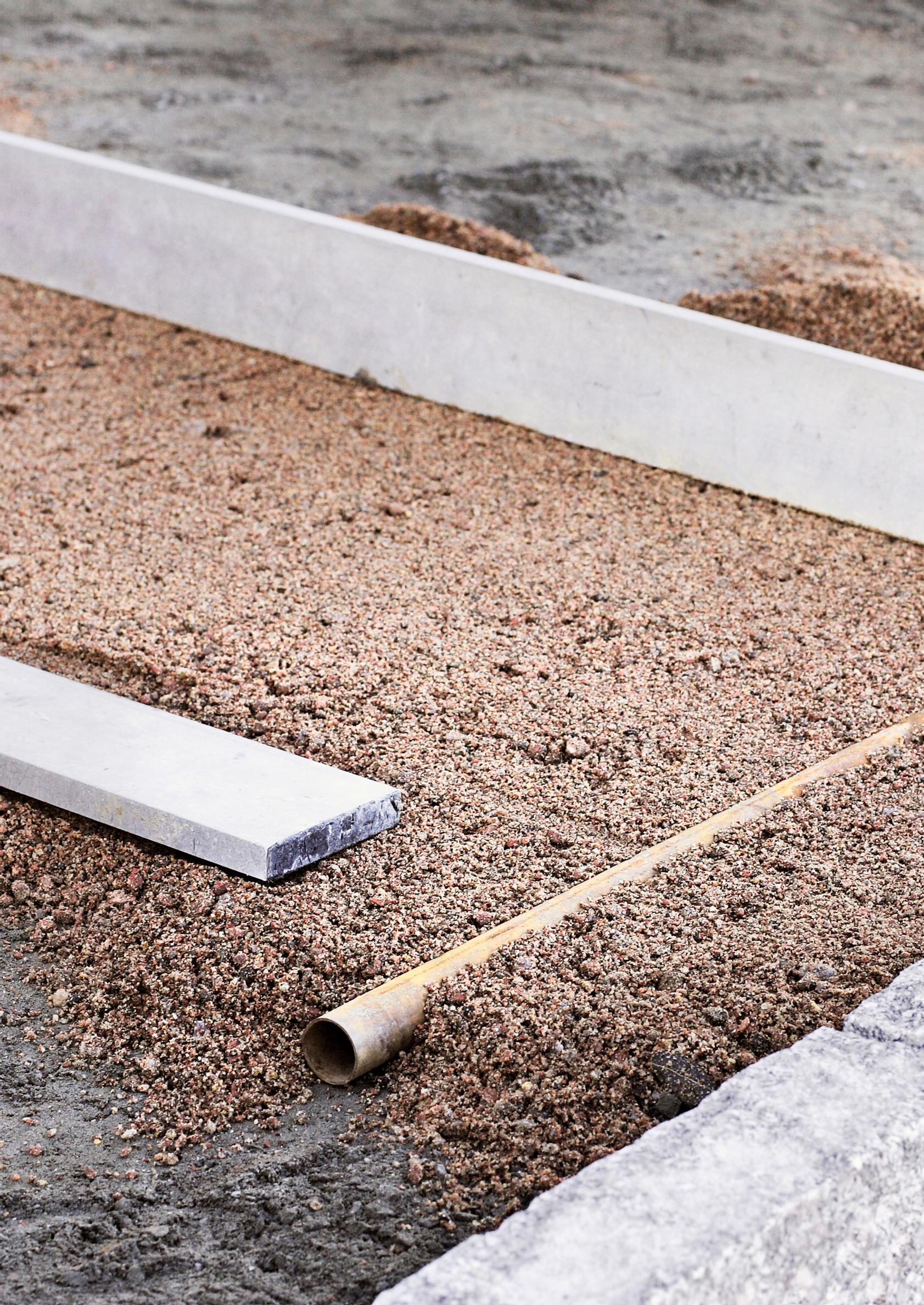 2. Kun pohja on tasattu ja tiivistetty, kantavan kerroksen päälle jätetään tilaa 2–4 sentin paksuiselle asennushiekkakerrokselle.